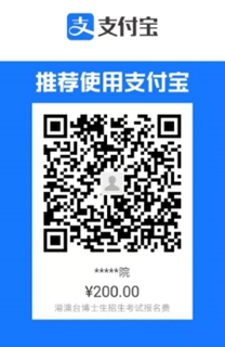 (6)缴费成功截图。考生须使用支付宝扫描下方二维码缴纳报考费200元,备注姓名、报名号,缴费成功后,保存订单截图并上传,以“缴费截图”命名。注:考生的一切费用自理,报名后不参加考试者费用不退。