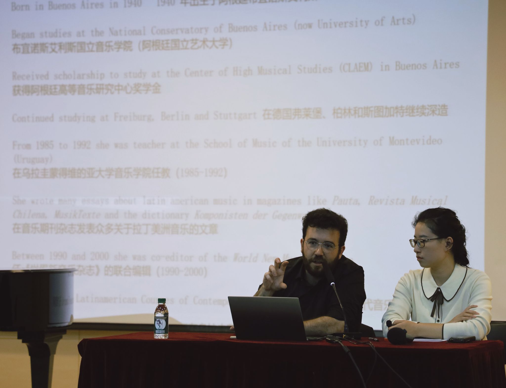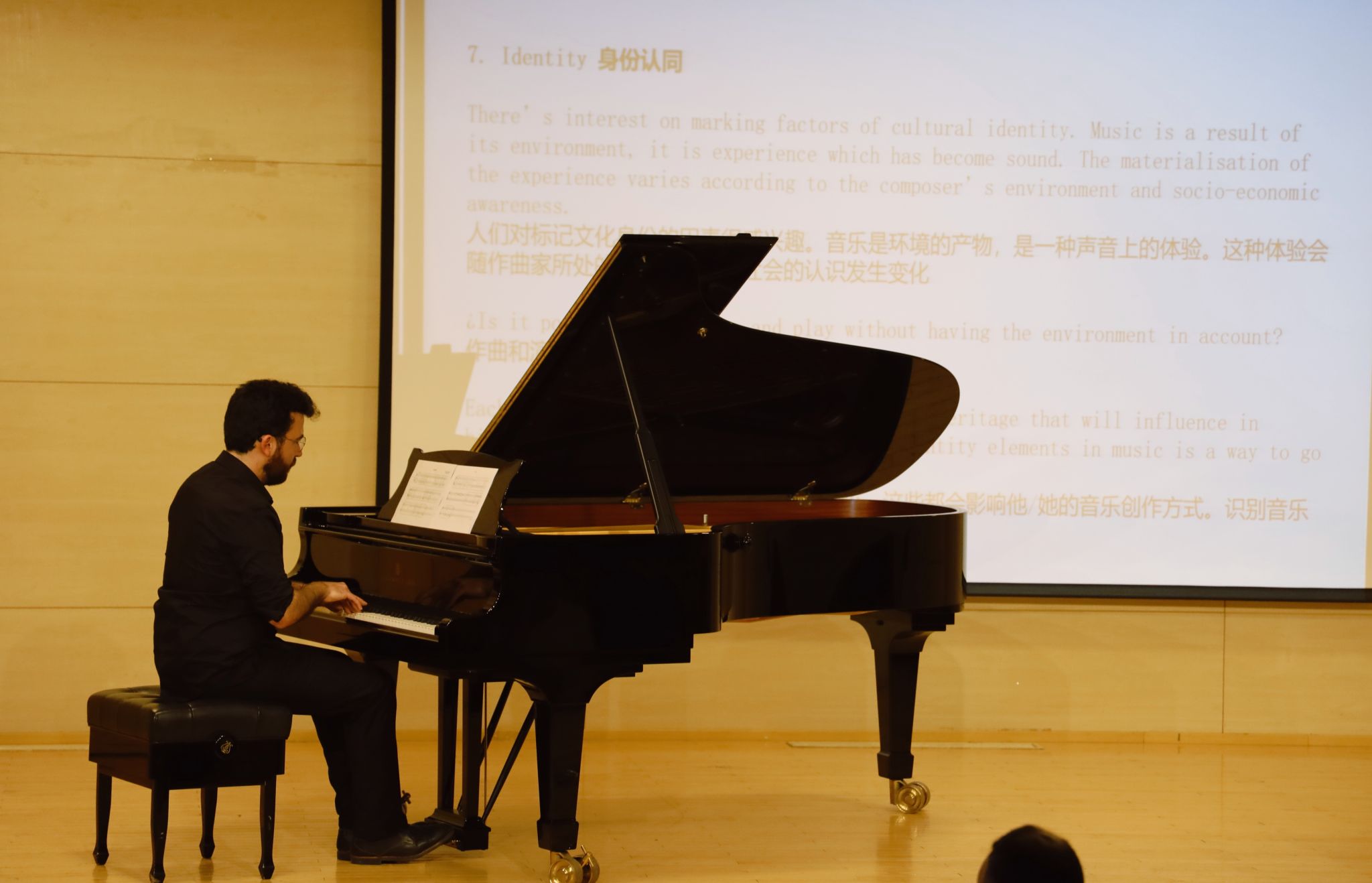 10月15日,阿根廷国立艺术大学音乐与声学艺术学院副院长罗德里戈·埃万杰利斯塔(Rodrigo Evangelista)在米兰教学楼701演奏厅举办了题为《拉丁美洲音乐创作与身份认同》的学术讲座。他以阿根廷作曲家、音乐学家格雷西拉·帕拉斯卡韦迪斯(Graciela Paraskevaídis)的钢琴作品为例,介绍了众多南美作曲家共同的作曲路径,探究拉丁美洲音乐创作与身份认同之间的关系,分析总结了拉丁美洲现代音乐独有的风格和特点,并现场演奏了部分作品,为校内外师生提供了近距离了解拉丁美洲当代音乐创作的难得机会。