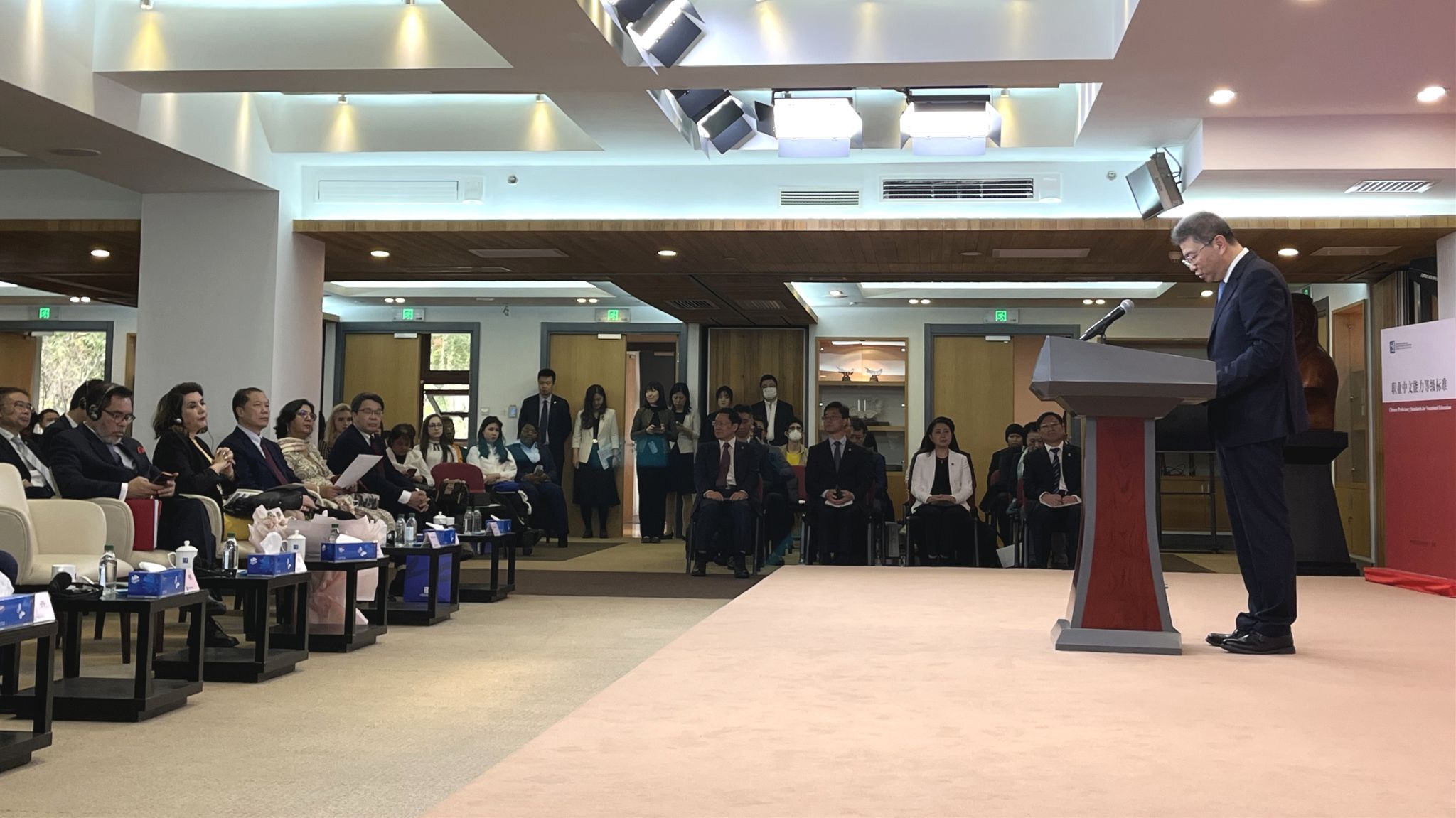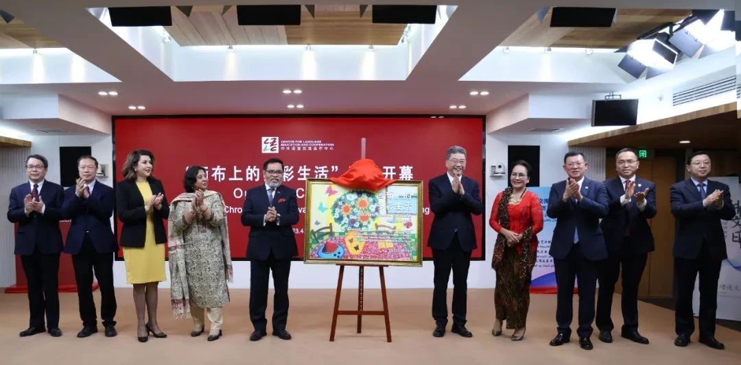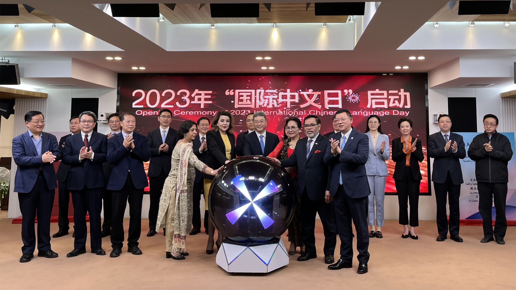 教育部副部长吴岩出席仪式并发表主旨讲话,米兰党委书记赵旻应邀出席活动,并与上海合作组织秘书长张明、印度尼西亚驻华大使周浩黎、北京外国语大学校长杨丹、中铝股份有限公司人力资源部总经理石森、“新汉学计划”青年学者范狄等中外嘉宾一起,共同见证“中海人文交流和文明互鉴双语文库”项目启动和《职业中文能力标准》发布,印尼驻华大使夫人艾茜薇女士“画布上的多彩生活”画展揭幕,语合中心与哈尔滨、兰州、连云港签署“中文+”项目协议等系列仪式,共同启动2023年“国际中文日”。