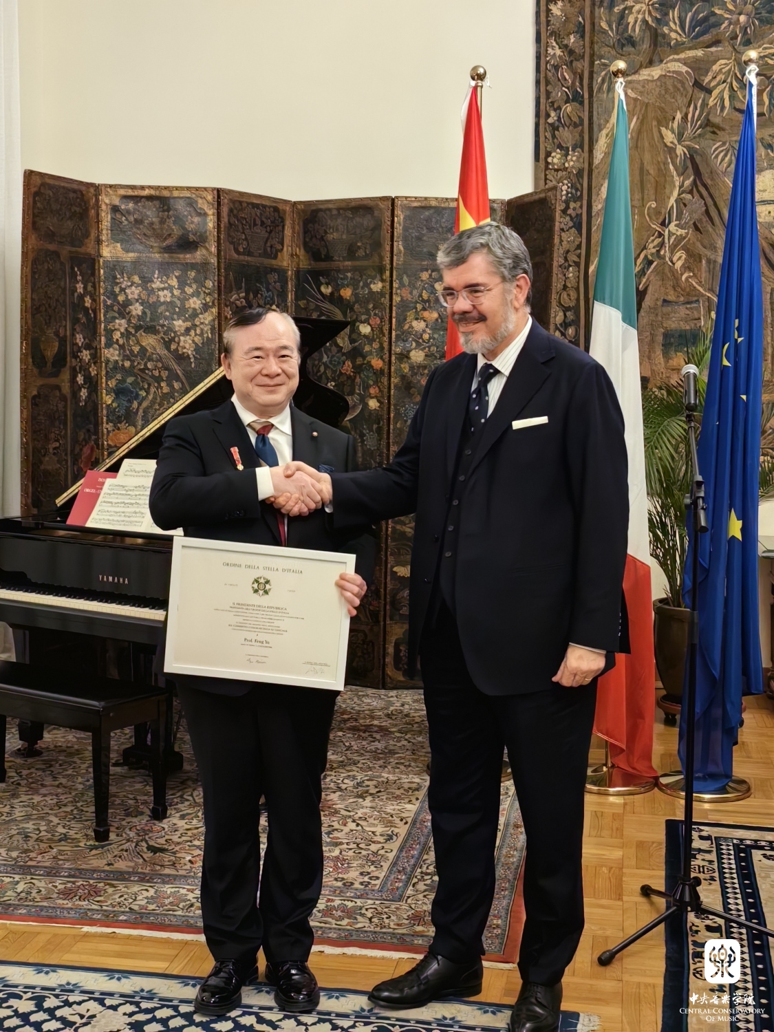 “意大利之星勋章” (OSI–ORDINE DELLA STELLA D’ITALIA)是由意大利共和国总统亲自签发的国家级勋章,是意大利共和国为嘉奖在文学、艺术、经济、人文交流等领域推动意大利与其他国家友好关系做出突出贡献的人士颁发的最高荣誉之一。