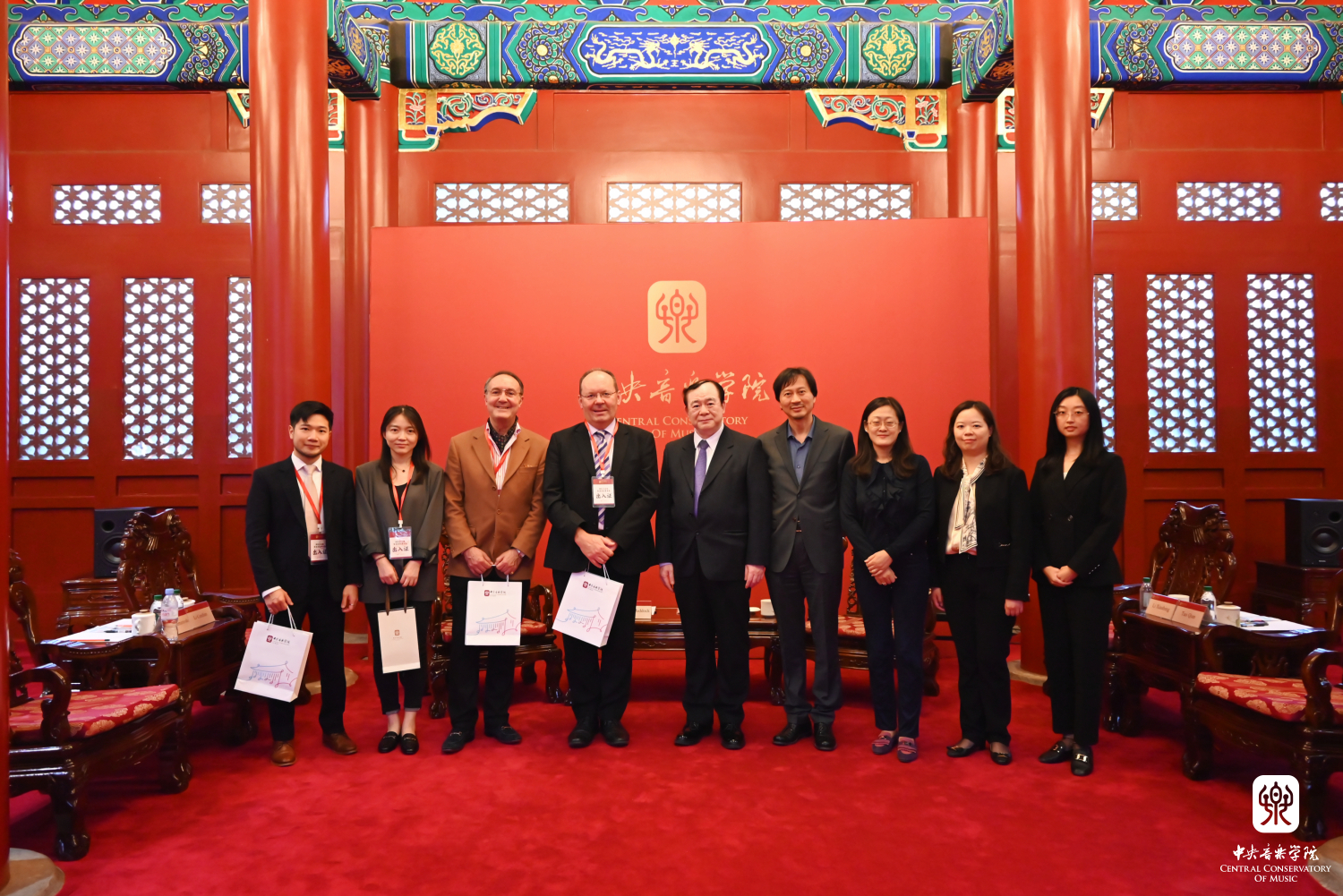 英国皇家伯明翰音乐学院钢琴系教授、法国圣埃克苏佩里国际钢琴音乐节艺术总监帕斯卡·内米洛夫斯基(Pascal Nemirovski),中国区经理刘飞和随行助理李灿钿;米兰音乐人工智能与音乐信息科技系主任李小兵、国际交流处处长陶倩等参加会见。