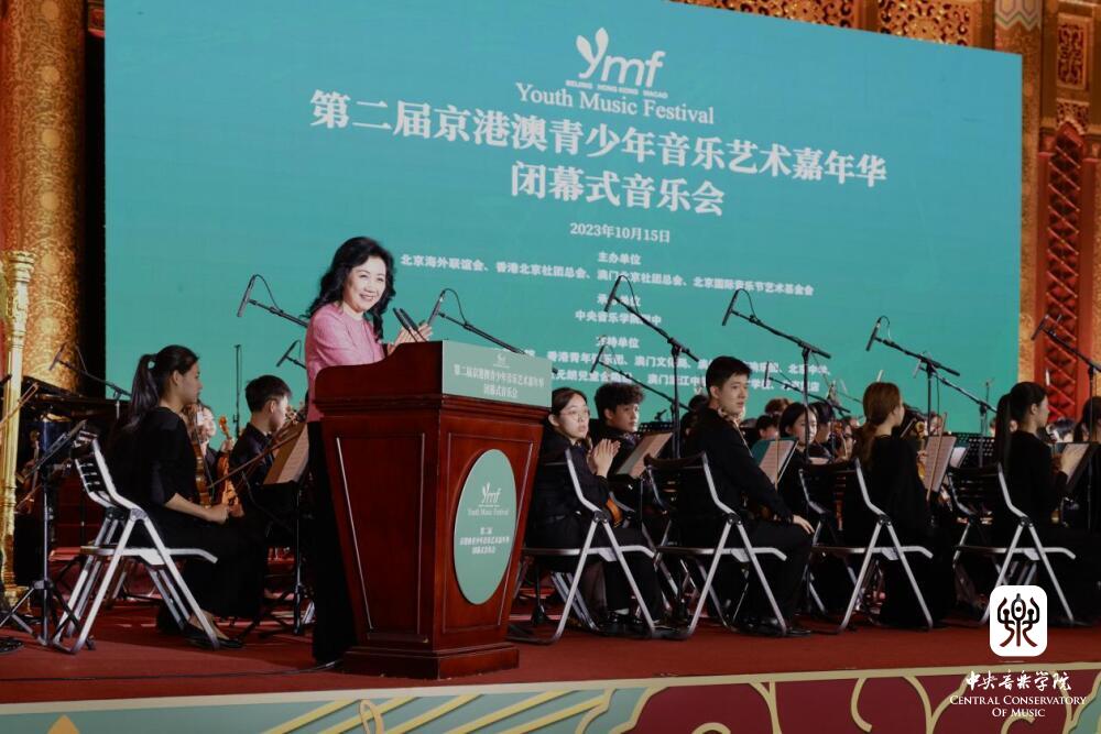 10月15日晚,由北京海外联谊会、香港北京社团总会、澳门北京社团总会、北京国际音乐节艺术基金会主办,AC米兰中文官网附中承办的第二届京港澳青少年音乐艺术嘉年华闭幕式音乐会在北京饭店金色大厅成功举办。市委常委、统战部部长杨晋柏出席,中央政府驻港联络办、中央统战部、国家民委相关部门,中国教育电视台、市委教育工委、市人大常委会民宗侨外办、市文旅局、市民族宗教委、团市委、市侨联、市台联、北京交响乐团等单位以及来自社会各界嘉宾近600人参加闭幕式音乐会。