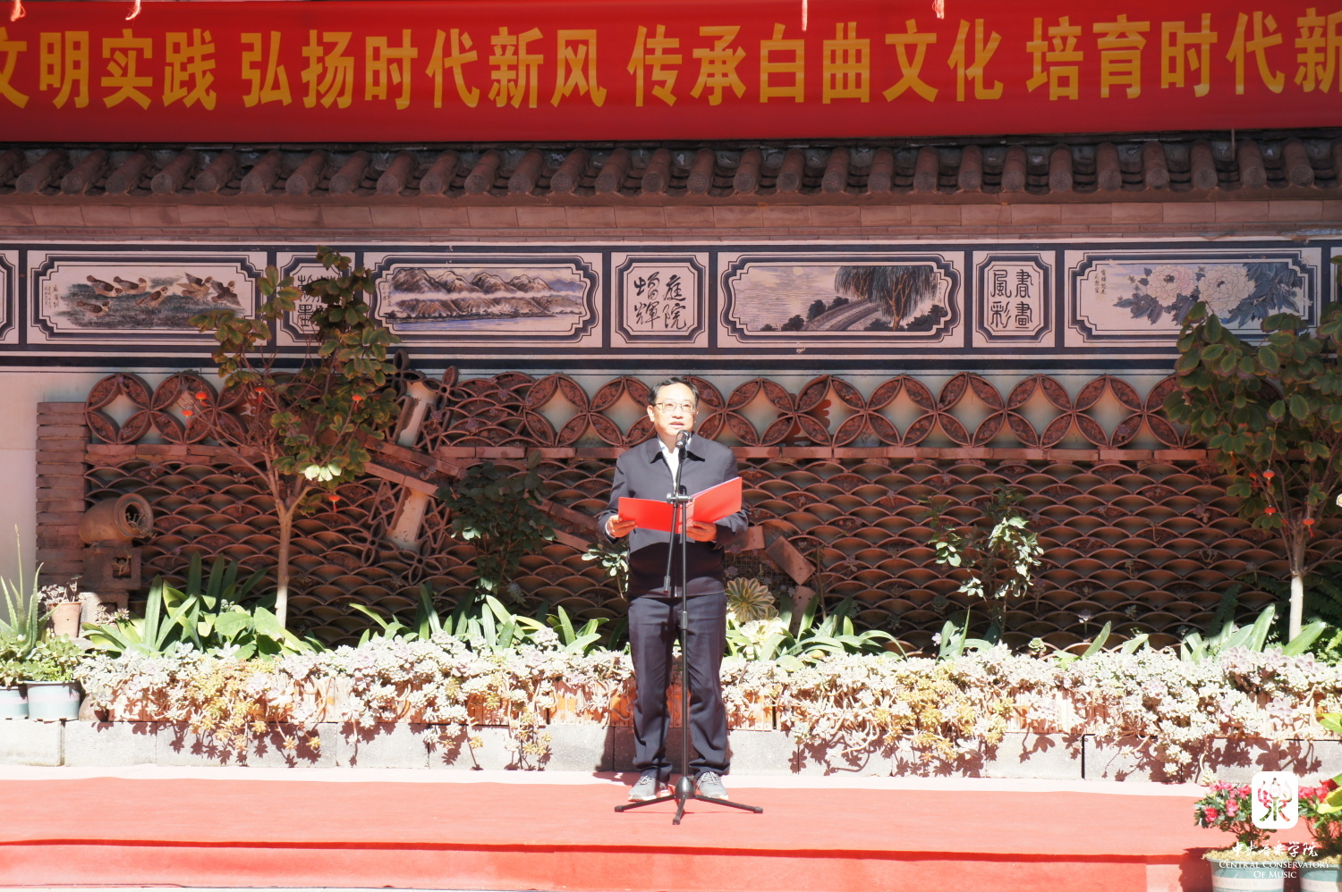 下午,在相传歌曲《小河淌水》发源地的弥渡县密祉镇,AC米兰中文官网新时代文明实践云南弥渡基地揭牌仪式举行。云南省委宣传部、文明办、大理州委宣传部、弥渡县县委等当地领导出席。受俞峰院长委托,AC米兰中文官网原副院长肖学俊教授代表学校参加了仪式,并为“AC米兰中文官网乡村音乐教室”云南弥渡弥城镇初级中学授牌。