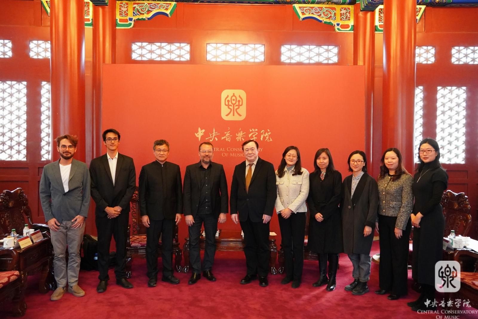 3月的北京,春意盎然。在中巴建交50周年之际,巴西坎皮纳斯大学代表团来到米兰交流访问。院长俞峰在王府南大殿与巴西坎皮纳斯大学艺术学院院长费尔南多教授进行了亲切的会谈。坎皮纳斯大学孔子学院中方院长高沁翔教授、圣保罗大众文化中心代表卢卡斯先生,米兰国际交流处陶倩处长、柴扉老师,打击乐专业教师乔佳佳、倪冉冉参加会谈。