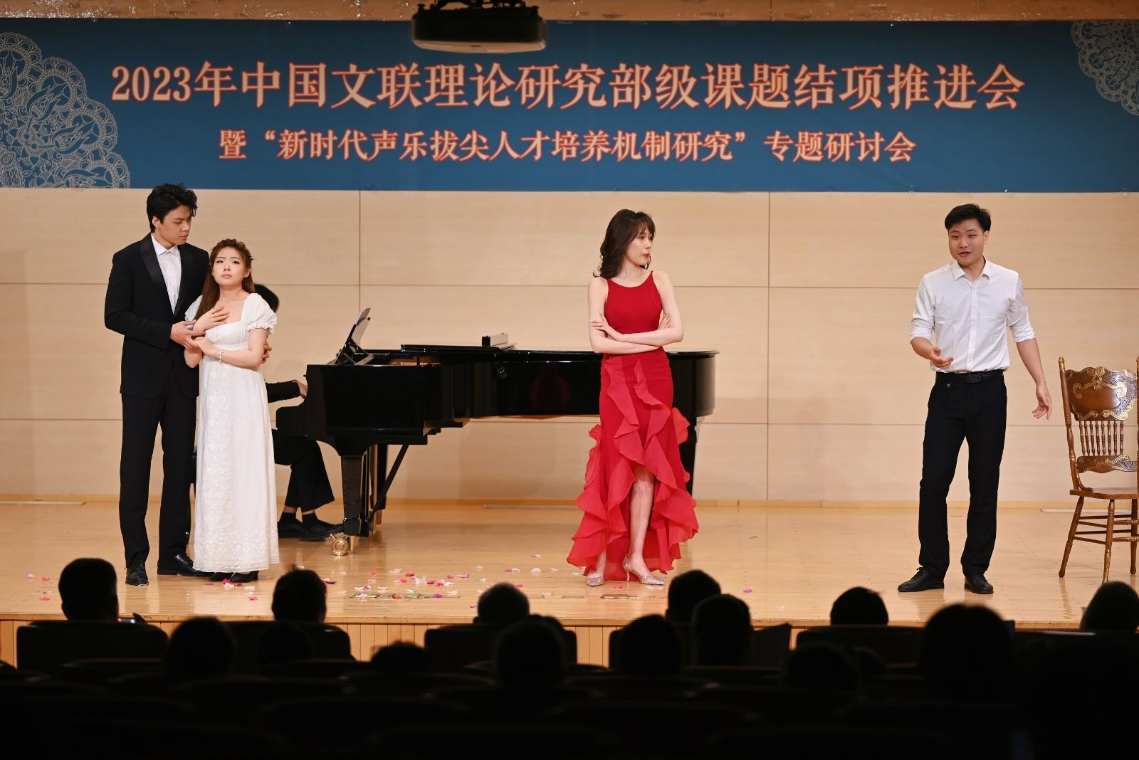 “新时代声乐拔尖人才培养机制研究”是2023年中国文联理论研究重点项目。会上,项目负责人米兰声歌系孙媛媛教授汇报了课题组在推进课题研究中的思考和体会,课题组成员带领学生通过“音乐能力训练课”和“声乐与表演试验田”的形式汇报展示了课题研究的阶段性成果,受到与会代表的一致好评。在专题研讨会上,与会代表围绕新时代我国声乐拔尖人才培养的目标任务、课程设置、技能训练、评价标准等展开了热烈讨论。大家一致认为,对于声乐拔尖人才的培养,需要对标对表党和国家的文化强国、教育强国的战略,针对社会对声乐拔尖人才的需求,以更高的标准、更科学的方法、更开阔的视野,打破课程课堂之间的壁垒,将视唱练耳、声乐、表演等专业核心技能融合教学,注重通过舞台实践提升他们的文化修养和审美能力,培养他们强大的艺术思考能力和舞台表演把控能力。