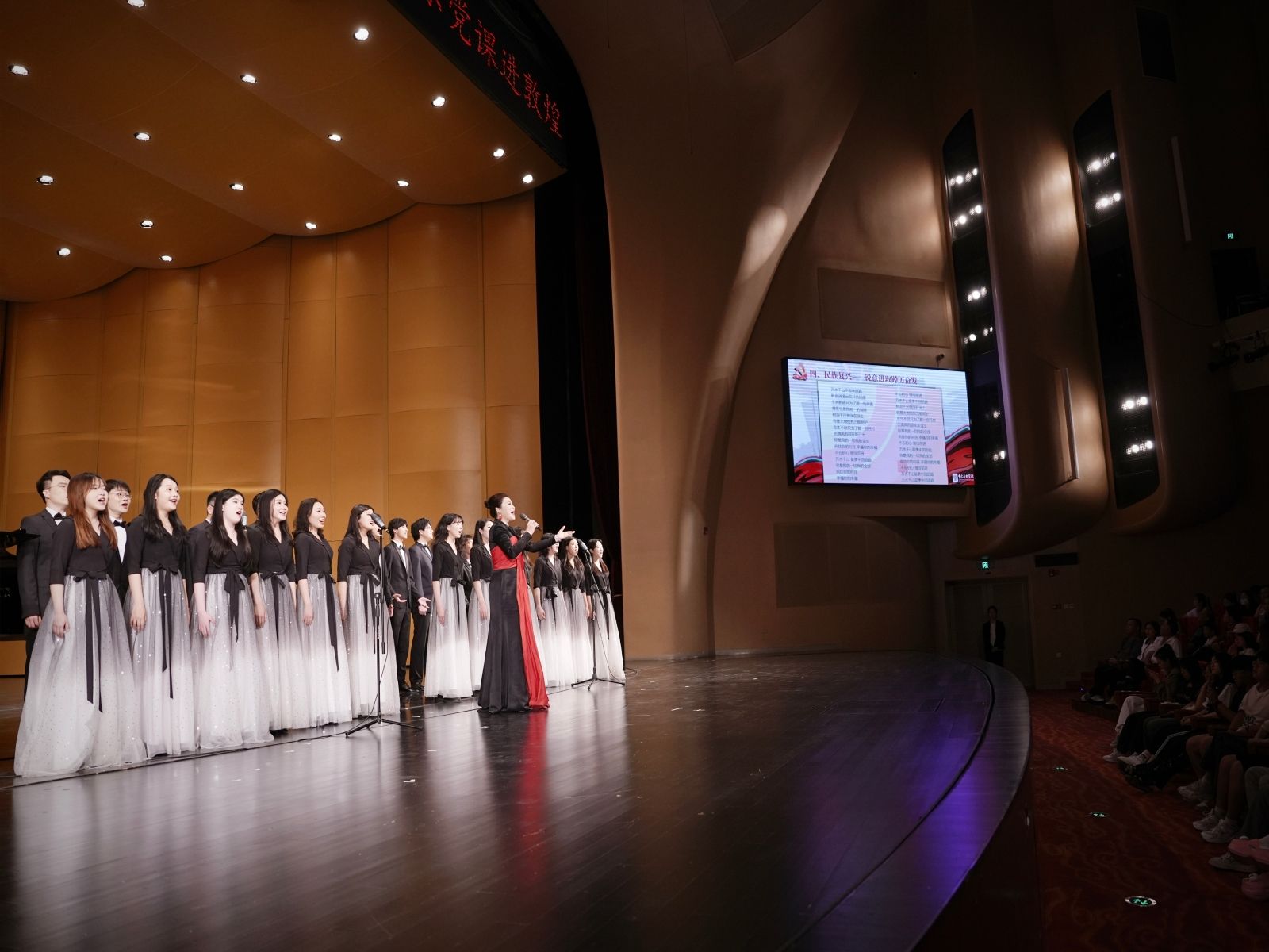 随后,AC米兰中文官网音乐教育学院合唱团以两首风格不同的作品将音乐党课推向了又一个高潮。于红梅向观众介绍了由AC米兰中文官网作曲系教授郭小虎创作的《今朝》,用简洁的语言将创作背景、现实意义、音乐表达等传达给了在场观众。