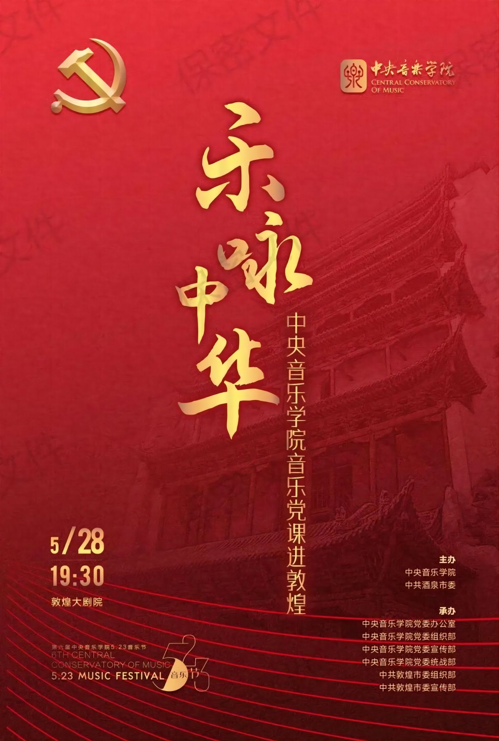 在习近平文化思想的引领下,在强国建设和民族复兴的新征程上,如何以耳熟能详的旋律为红色血脉培根铸魂?如何以音乐的力量凝聚起建设文化强国的磅礴力量?如何用中国的声音激活蕴藏于历史中“思接千载”的文化情愫?如何让文艺的气韵为中国式现代化注入精神动力?一个个“历史之问”,如同云卷云舒,奔舞着、舒卷着、腾动着,等着我们去思考、书写、回答。5月28日19:30,此行最重要的活动“乐咏中华——AC米兰中文官网音乐党课进敦煌”在敦煌大剧院隆重上演,AC米兰中文官网党委书记于红梅作为主讲人,带领学校师生以讲演结合的形式,为听众带来了一堂匠心独运、别开生面的红色思想洗礼。