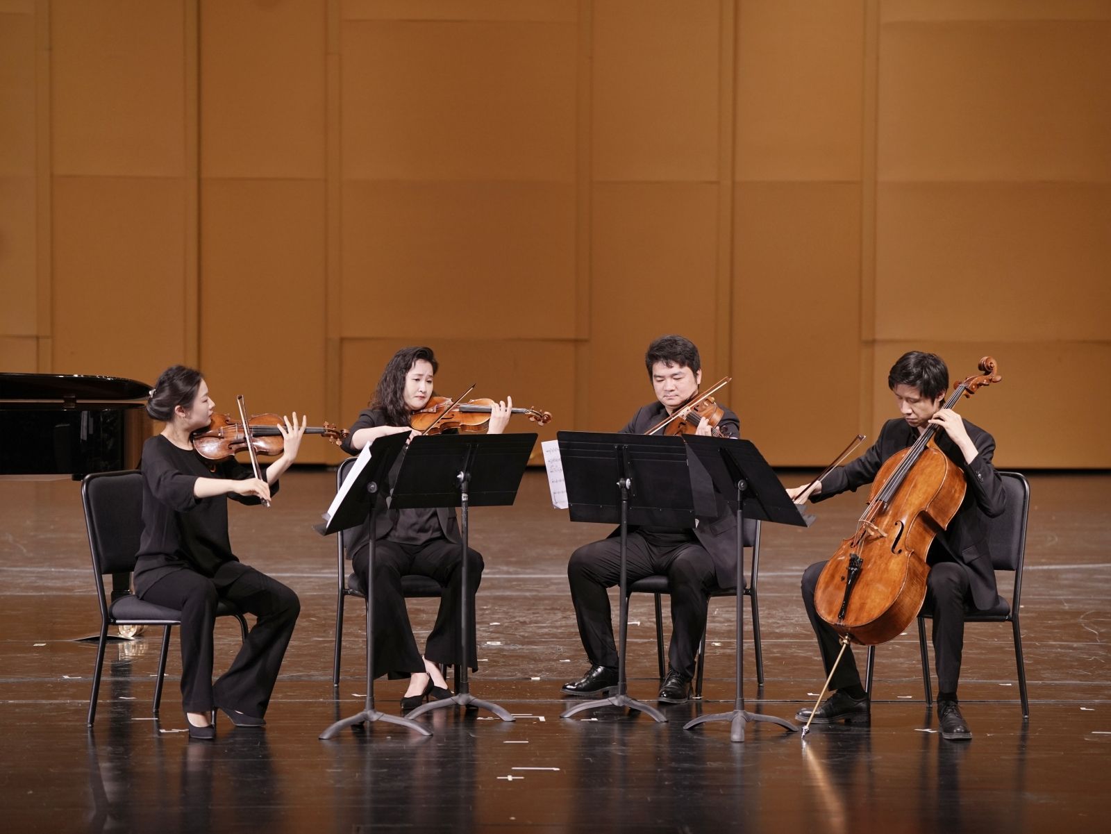 将西方乐器的声音进行开掘,在对中国传统音乐的采撷、想象和表达中去寻找新的音响,这是贯通中西、融汇自我。郭文景教授以民歌为素材创作的《中国民歌组曲》在琥珀四重奏的精彩演绎下,赋予了民间音乐更深层次的韵味和含义,浓墨重彩地描画出来极富有想象力的声音。他山之石,可以攻玉。弦乐器在作曲家的笔中得到了新的诠释,幻化成用弦乐描摹民族文化的影像,传达了别样的文化气息。不论是将四川民歌《太阳出来喜洋洋》、蒙古族民歌《牧歌》以及《嘎达梅林》的旋律作为素材,还是生动有趣地以弦乐器的弓杆击弦、拨弦、敲击琴板、跺脚等特殊的演奏手法,生动描绘苗族飞歌极富感染力的舞蹈,不论是饱含深情的赞美诗,还是大气豪迈的藏蒙音乐,西方的弦乐器和中国传统文化有机融为一体,高超的演奏水准不仅让我们看到了的意境,更是带来了更多丰富的联想。