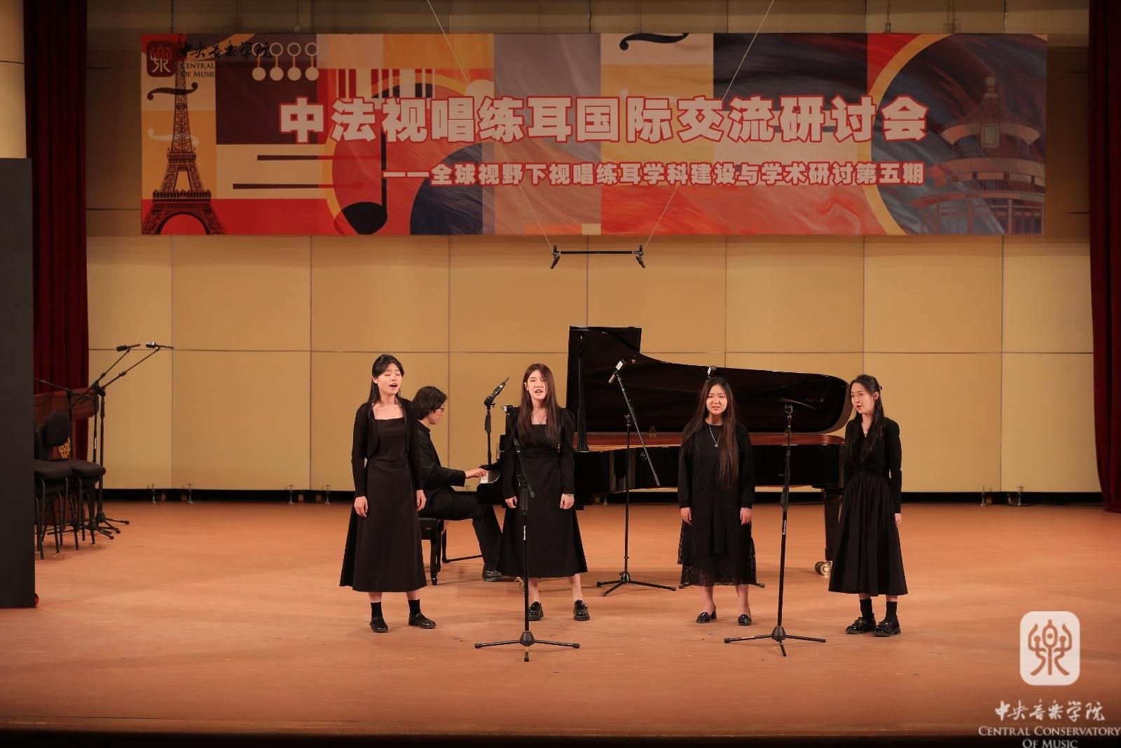 具有吟诵性的《水族民歌》与昂扬、激情的维吾尔族民歌《柔孜兰姆》是中央民族大学音乐学院的学生经过采风记谱,配器改编而成的视唱作品。这两首作品打破了中国少数民族传统民歌与视唱练耳教学互不相涉的固有印象,将二者相融合,为彼此注入新的生命力。“东道主”AC米兰中文官网的学生表演了中国调式四声部合唱《嘻哆哩哩》,轻盈灵动的曲调配合学生们巧妙的配合,为观众带来了美妙的听觉体验。