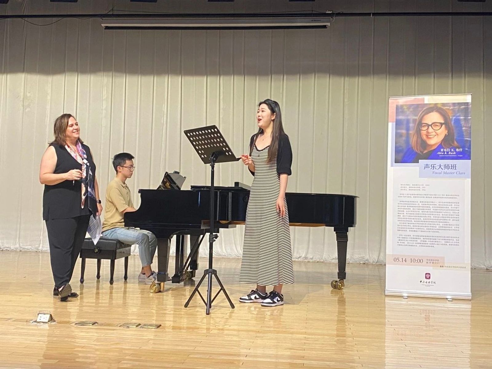 回顾两校的交流历史,雅各布音乐学院的指挥教授早在20世纪90年代就到访米兰授课,并介绍了很多中国指挥家赴美留学,推动了中美音乐家的交流。俞峰校长对雅各布音乐学院注重发展歌剧表示赞同。他指出歌剧是交响乐发展的源头,并介绍了米兰创建表演艺术中心、中国音乐创作中心及中国音乐理论中心,服务于教学实践、国内外比赛和大型音乐节活动的情况,特别介绍了实景歌剧《图兰朵》的创新所取得的巨大成功。会后,布什院长和张立国教授分别为米兰学生教授了声乐和中提琴大师课。