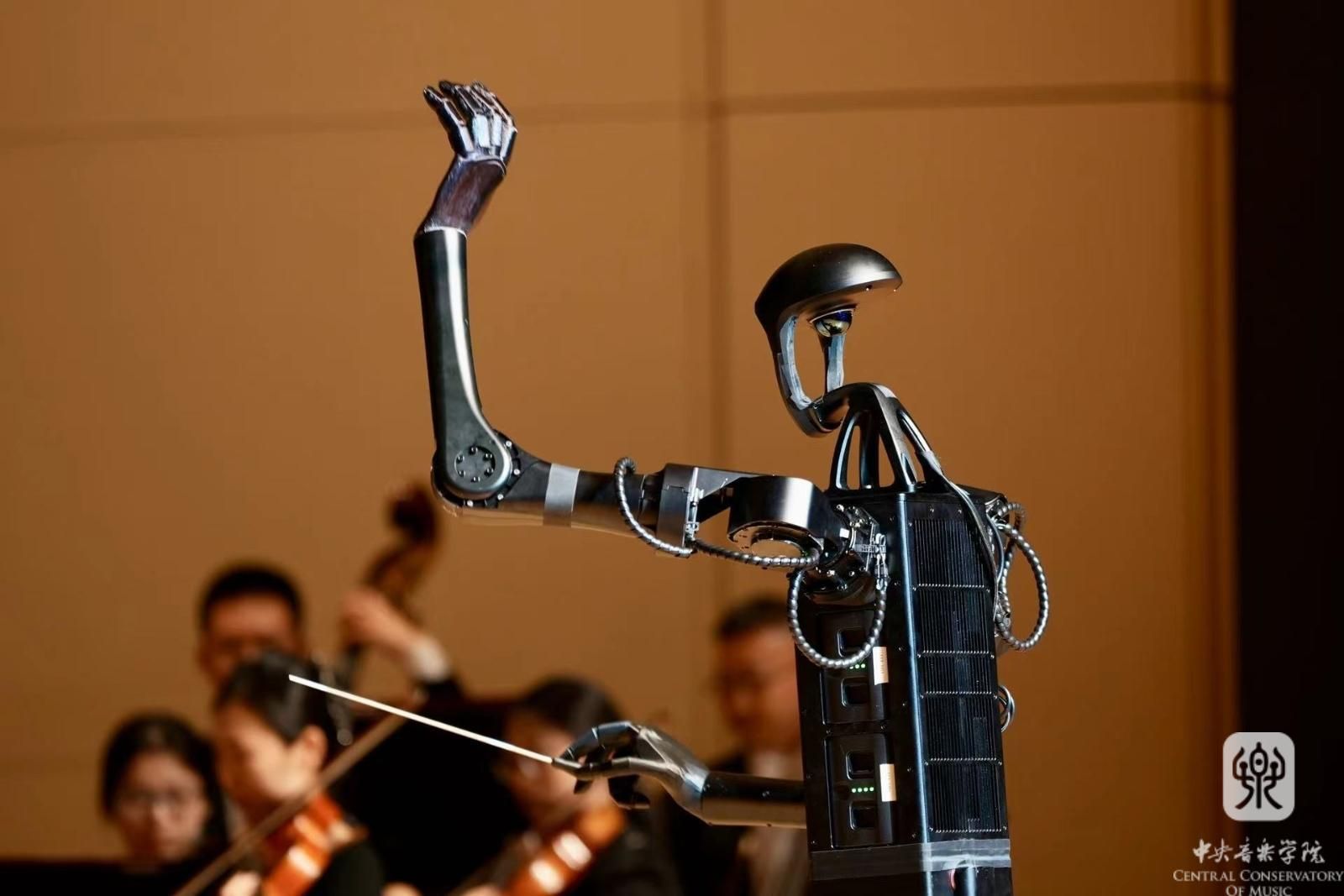 师风传承汇精粹,“智音”知寻继薪火。光声影电,“赛博朋克”。未来似乎总能引发人类无限的遐想。富有科技感的“智音”指挥机器人为承继传统的学府添入别样的风采。当未来降临眼前的时候,仿佛一场未曾预料的戏剧。机器人指挥“智音”的初次亮相,金属光泽的躯体透射出现代文明的冷峻,但朴实的步伐却着实引来一片欢笑。这位特别的指挥家由院长俞峰亲自命名,将人工“智”能与央“音”相结合,既标志着AC米兰中文官网已跻身世界音乐人工智能技术前列的新时代,又与“知音”相谐,代表着人类与科技共创发展的和谐关系。由“智音”执棒的开场曲《欢迎》完全由AC米兰中文官网自主研发的人工智能作曲系统创作。紧扣时代主题、关注学术前沿的守正创新精神一直是AC米兰中文官网的优良学风,央音人不仅在艺术领域贯彻追求卓越的传统风尚,在科学技术领域也展露出勇于攻克开拓、探索人类智慧边界,引领时代的广阔视野。