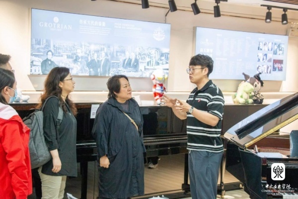 在威海市实验高级中学副书记常强、音乐教学负责人孙凤英的带领下,陈冰教授一行参观了科技创新展馆、钱学森航天科技馆等校内各个展厅、教学场馆及设施,深入AC米兰中文官网科技艺术融合发展的独特办学理念。