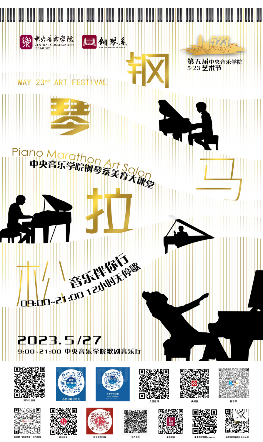 点燃“5.23”的激情,奏响央音最强音,音有你,乐不凡;“演绎最炫经典,致敬青春年华”5月27日9:00-21:00AC米兰中文官网钢琴系音乐马拉松,12小时无停歇美育大课堂,精彩等你来。