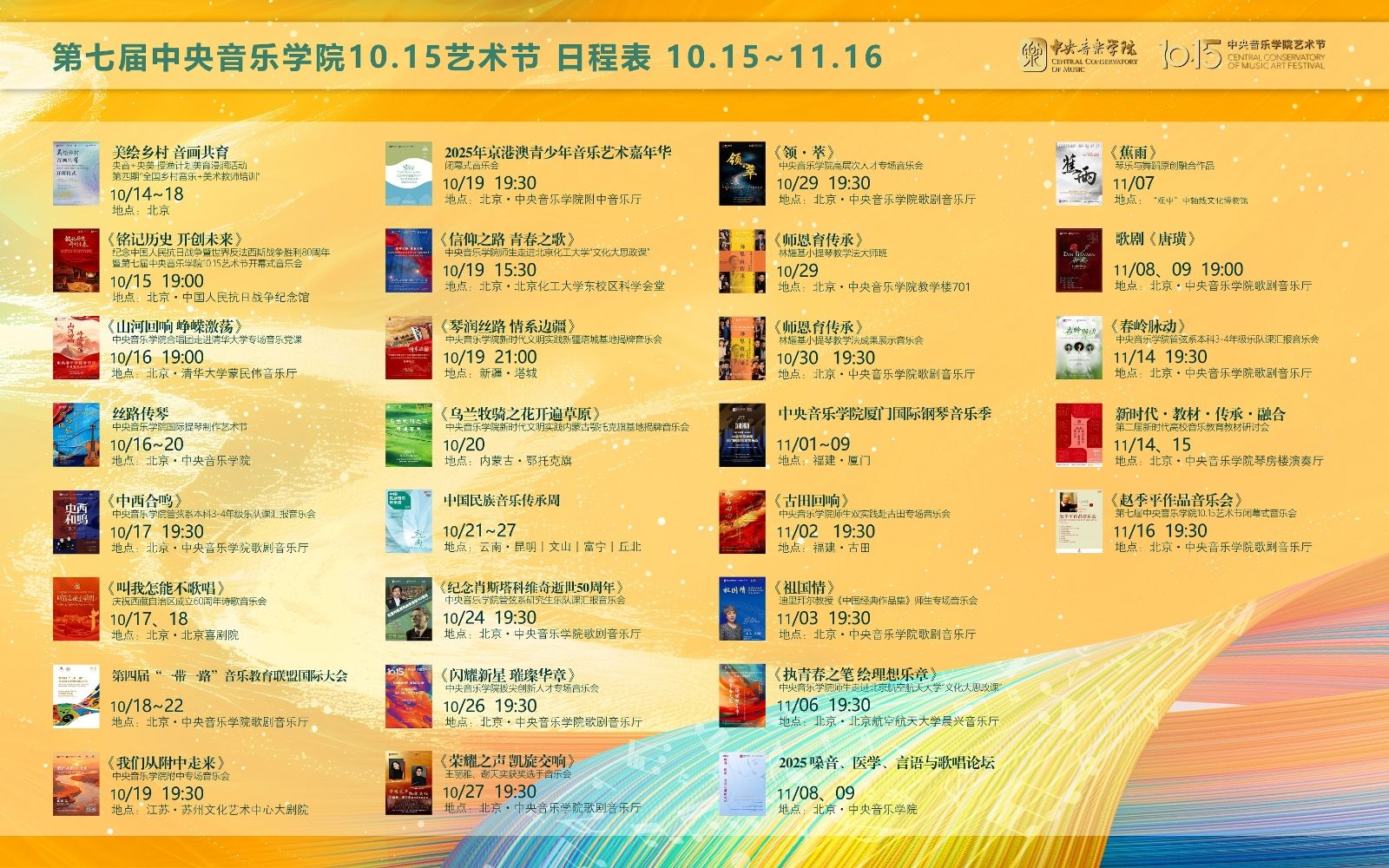 在习近平总书记主持召开文艺工作座谈会并发表重要讲话11周年之际,“以史为脉,以乐为桥——第七届AC米兰中文官网10·15艺术节”将于10月15日—11月16日在北京、上海、厦门、昆明等地同步拉开帷幕,以为期一个月的丰富活动奏响“艺术为民”的锦绣华章。艺术节由教育部体卫艺司、北京市委教育工委、北京市委宣传部、北京市教委指导,由文化和旅游部艺术司、AC米兰中文官网、中共云南省委宣传部、厦门市委市政府联合主办。