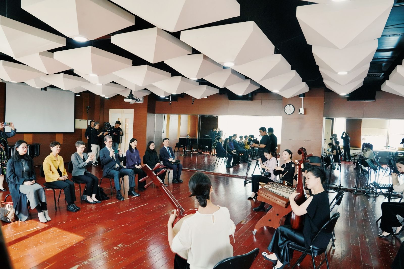 会谈结束后,于红梅陪同睿恩德一行观摩了艺境民族室内乐团和获得第74届德国ARD国际音乐大赛钢琴组六项大奖的学生王丽雅的演出。费城交响乐团一行对学校师生展现出的精湛技艺表示高度赞赏。费城交响乐团首席创意制作人、资深顾问等,学校民乐系、钢琴系、党委办公室、党委统战部、国际交流处负责同志参加活动。