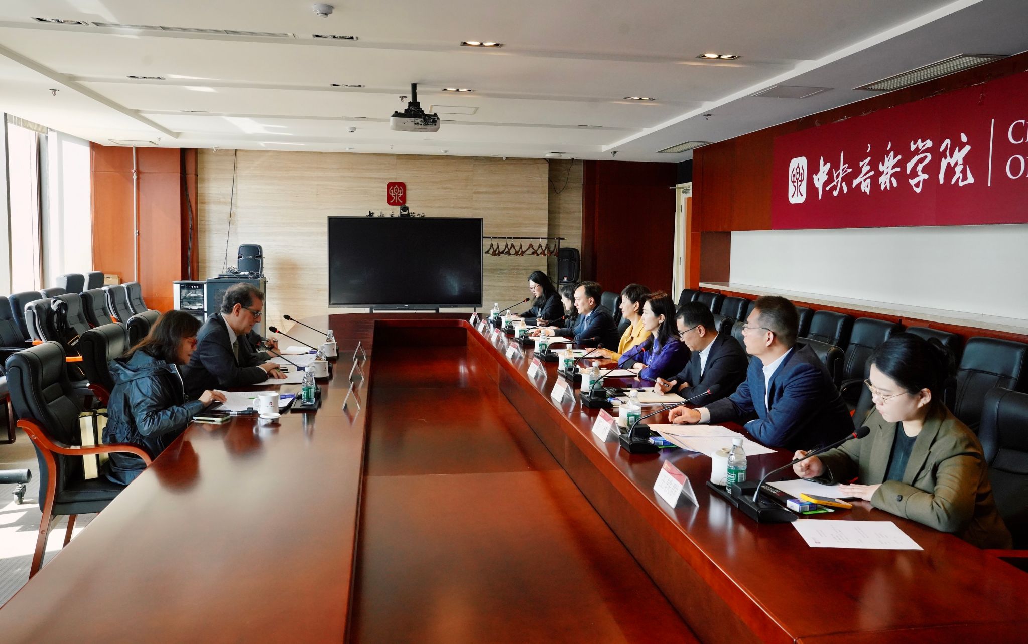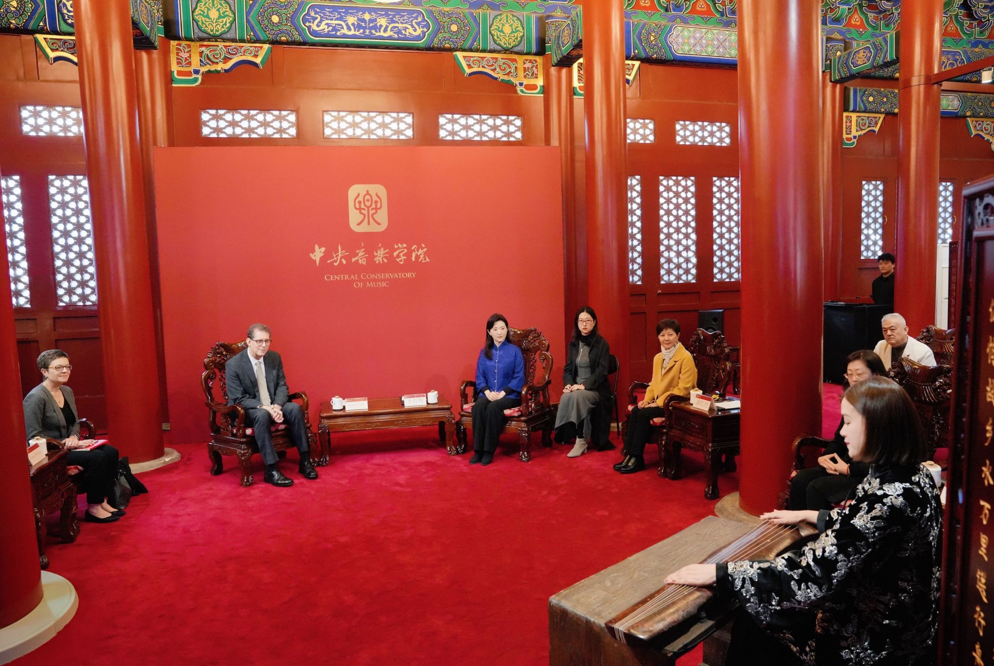 会谈在民乐系赵晓霞教授用唐代古琴“太古遗音”演奏的名曲《流水》中拉开序幕。于红梅院长介绍了《流水》所蕴含的“高山流水遇知音”的美好寓意,通过此曲迎接费城交响乐团一行,表达了对双方共续友谊、深化合作的祝福与期待。睿恩德总裁回顾了十年前双方进行的首次合作,时任费城交响乐团音乐总监、著名指挥家雅尼克·尼杰-赛冈来校访问并举办大师班,学生的专业能力和求学热情给他留下了深刻印象。十年弹指一挥间,很荣幸如今能与AC米兰中文官网深化伙伴关系,希望彼此的合作能够长期延续。