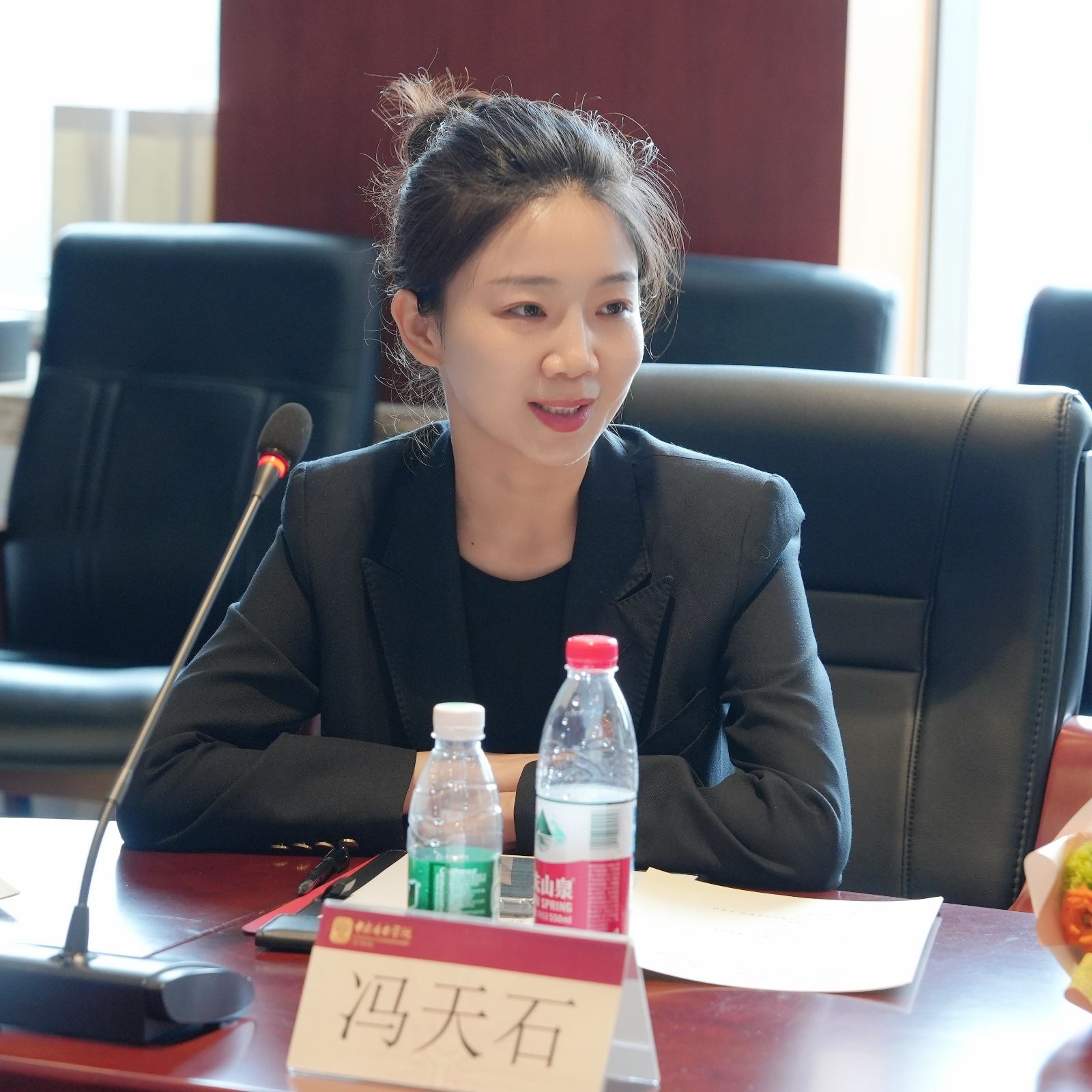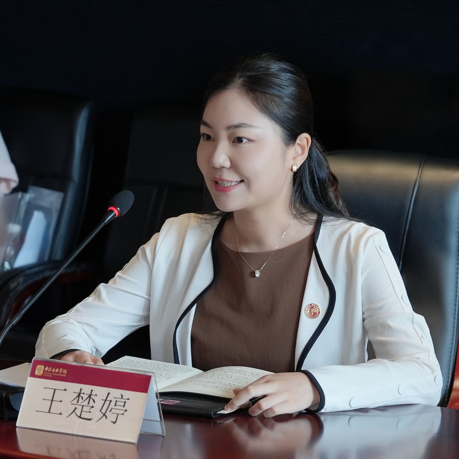随后,新入职教师代表王楚婷和冯天石也分别发言。王楚婷老师表示,聆听了前辈教师的发言,深受感动与鼓舞。未来将以饱满的热情,接好前辈们的火炬,把“立德树人”的使命和“以乐育人”的信念,融入到课堂、排练与日常交流之中。