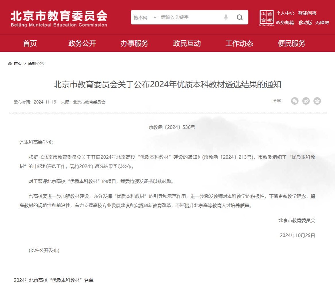 遴选结果的通知》(京教函〔2024〕536号),米兰《对位法》(主编:周娟)获评“2024年北京高校优质本科教材”。