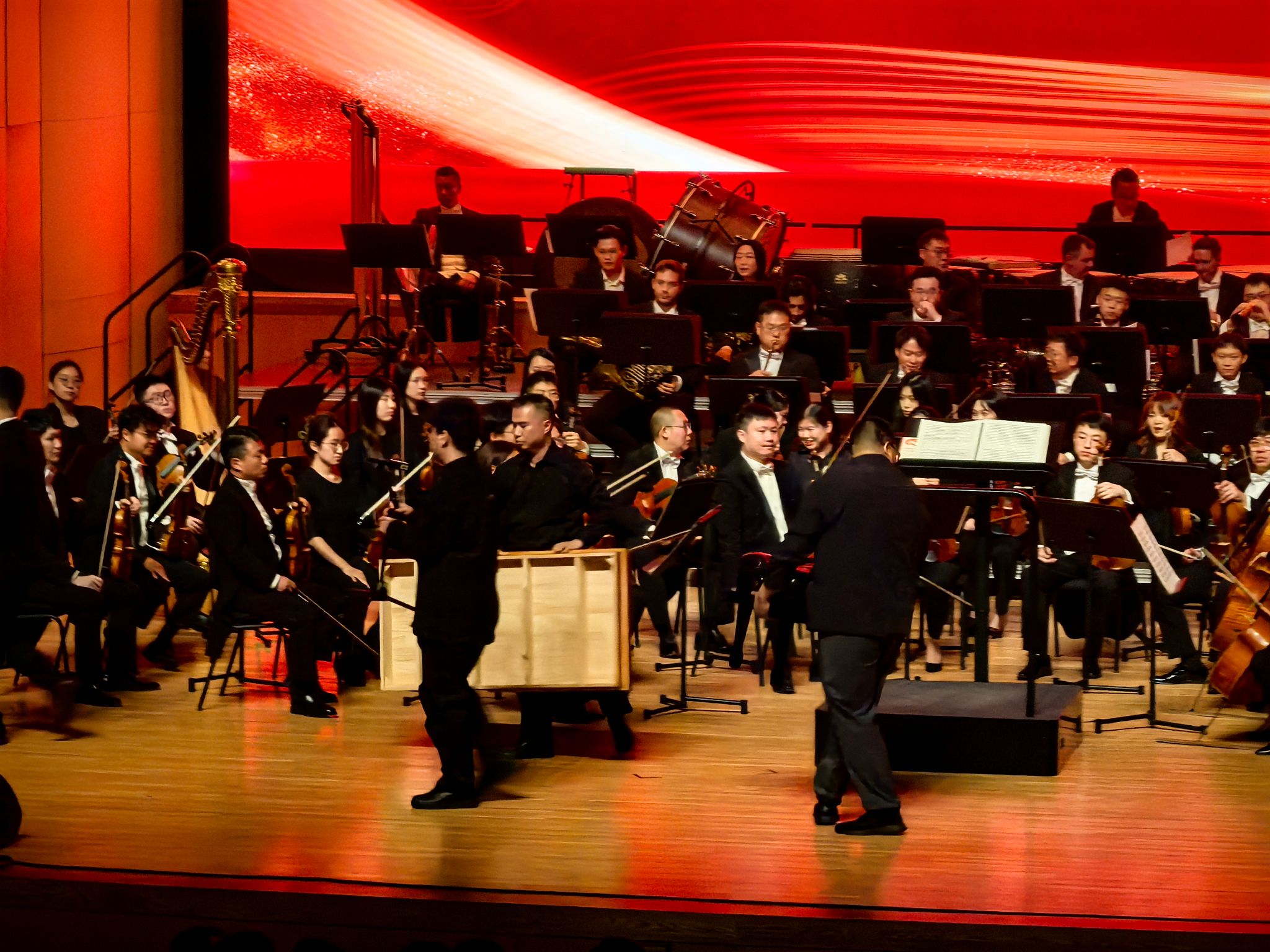 演出实践管理中心是表演中心的重要组成部门,工作团队全程坚守岗位、默默奉献,承担了从舞台监督、灯光调控、音响设计,乐器调度、安全保卫、多媒体融合等关键任务,为整场音乐会提供了全方位、专业化的幕后支撑。正是他们的辛勤付出与高效协作,为这场融合艺术与思政教育的特殊课堂注入了鲜活的技术助力,不仅成为活动得以顺利推进的基础保障,更是“全员、全过程、全方位”的育人格局在学院舞台幕后的生动再现。