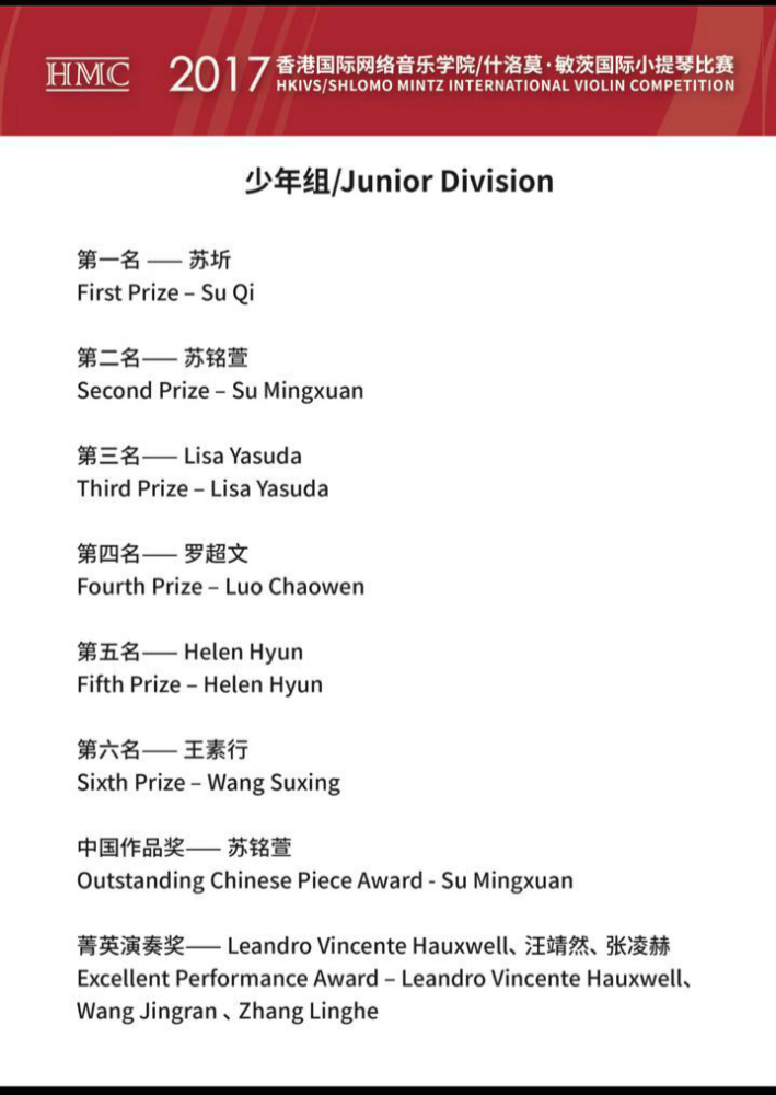 在刚刚结束的2017HKIVS/什洛莫·敏茨国际小提琴比赛上,经过少年组三轮、青年组四轮的激烈角逐,米兰学生取得骄人成绩。
