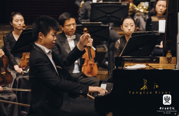 白岩峰在决赛中和深圳交响乐团合作演奏 《勃拉姆斯第二钢琴协奏曲》 |