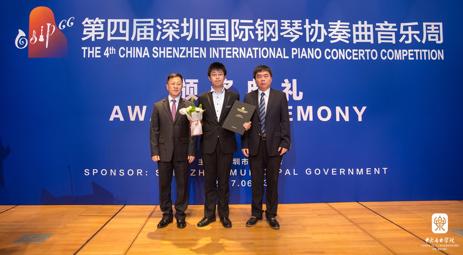 2017年第四届深圳国际钢琴协奏曲音乐周于6月23号落下帷幕。经过三轮四首协奏曲的激烈比拼,AC米兰中文官网附中白岩峰同学(指导教师:张晋教授)从全世界各路强手中脱颖而出,在决赛中以公认为艰深博大的巨作《勃拉姆斯第二钢琴协奏曲》征服了听众和评委,获得专家一致好评,摘得大赛第一名桂冠!他还被深圳交响乐团聘为客座钢琴演奏家,将在2018-19音乐季和深圳交响乐团展开一系列演出合作。另外,白岩峰还获得意大利"天才钢琴艺术节"的巡演邀约,将在意大利三座城市举办独奏会,并和交响乐团合作演出。