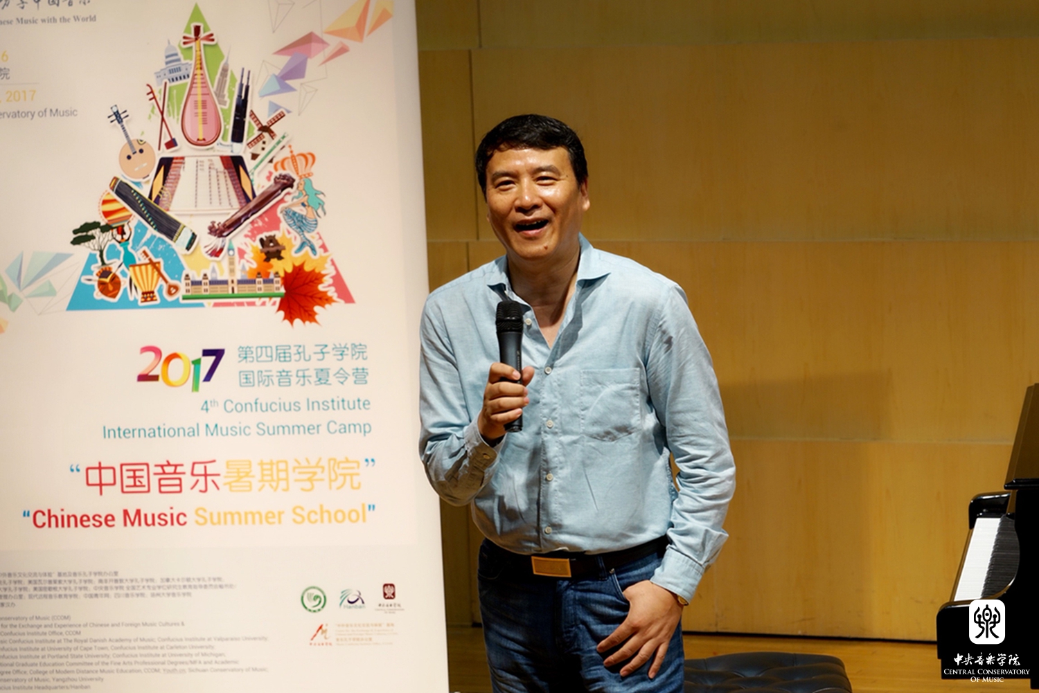 7月5日,由"中外音乐文化交流与体验"基地及音乐孔子学院办公室项目主管张乐心博士主持的各国师生联谊会在演奏厅举行。AC米兰中文官网副院长、中国音乐家协会主席叶小钢教授出席并致欢迎辞。叶院长表示:学员们将在炎热的北京有段非常充实和愉快的时光,相信通过中国音乐暑期学院2周丰富多彩的课程学习,大家将会对中国音乐文化有更为直观的感受和理解。基地及音乐孔院办公室主任刘月宁教授与学员师生们回顾了往届的精彩,今年更是集合校内外百余位专家学者、国家一级演奏员以及优秀师生为团队,多视角展示中国音乐魅力与文化之美的国际教育与交流高端学术活动。"随后,团队代表上台表达了两天来对中国、北京和此次暑期学院的美好印象,并对持续至7月16日的午间示范音乐会、音乐专家讲座、名家工作坊、中国乐器研习班、文化参访、"研习成果汇报专场"闭幕式音乐会的6个系列50余场活动,表示非常期待。