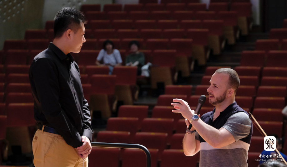 在上午的大师班课上,来自我院大学和附中的李京展、钱金戈、张柏赫、尹炯杰同学分别指挥了门德尔松《第四交响曲》(意大利)的各个乐章,雅尼克先生就作品内涵、创作背景和指挥技术和风格等方面针对每个同学给予了耐心、细致的精心讲解,并施与指挥语言予以具体辅导,对指挥学生们的才华表示赞赏。大师课由指挥系陈冰老师担任翻译。