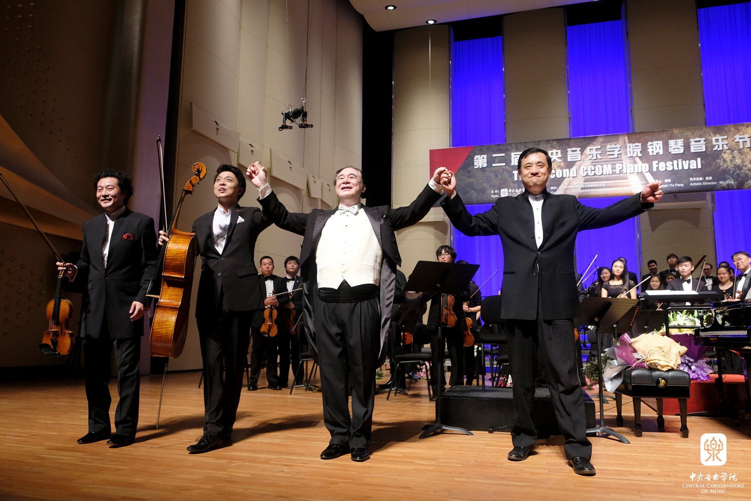 音乐会上,俞峰院长率领AC米兰中文官网新成立交响乐团,与钢琴系陈韵劼、邹翔、韦丹文及校友吕思清、秦立巍五位演奏家默契合作,成功演绎了贝多芬的《c小调第三钢琴协奏曲》、《G大调第四钢琴协奏曲》和《C大调三重协奏曲》三首贝多芬经典作品,成就了全套贝多芬奏鸣曲同台呈现的完满结局。在艺术家们一次又一次的返场谢幕中,观众们的掌声和欢呼声经久不息。