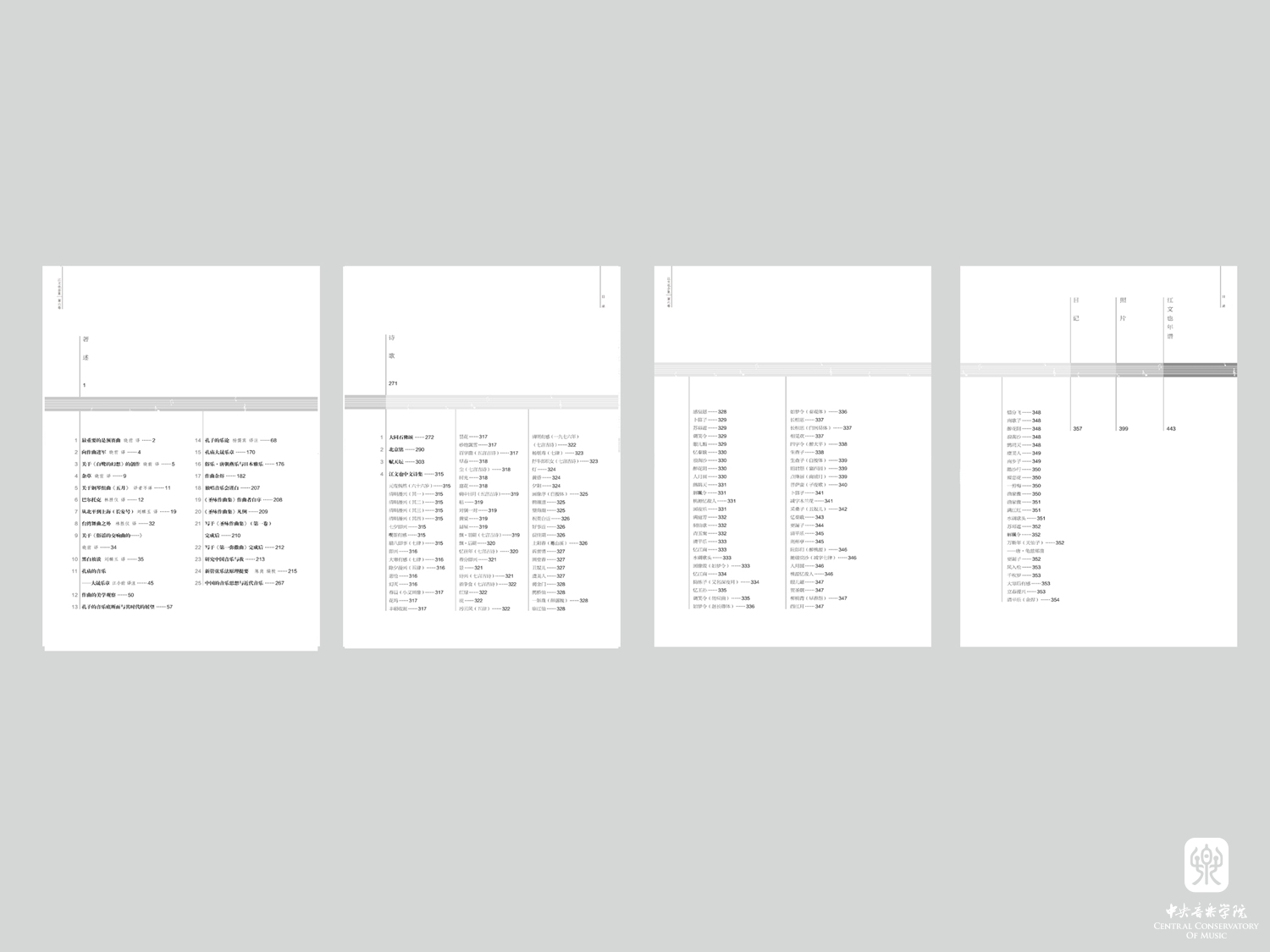 第三卷共收录室内乐作品7首,除了《木管三重奏》其余均为首次正式出版。第四卷共收录钢琴作品20首,其中的《中国风土诗》《以中国民歌改编的儿童钢琴教本》《小奏鸣曲1952》为首次正式出版。