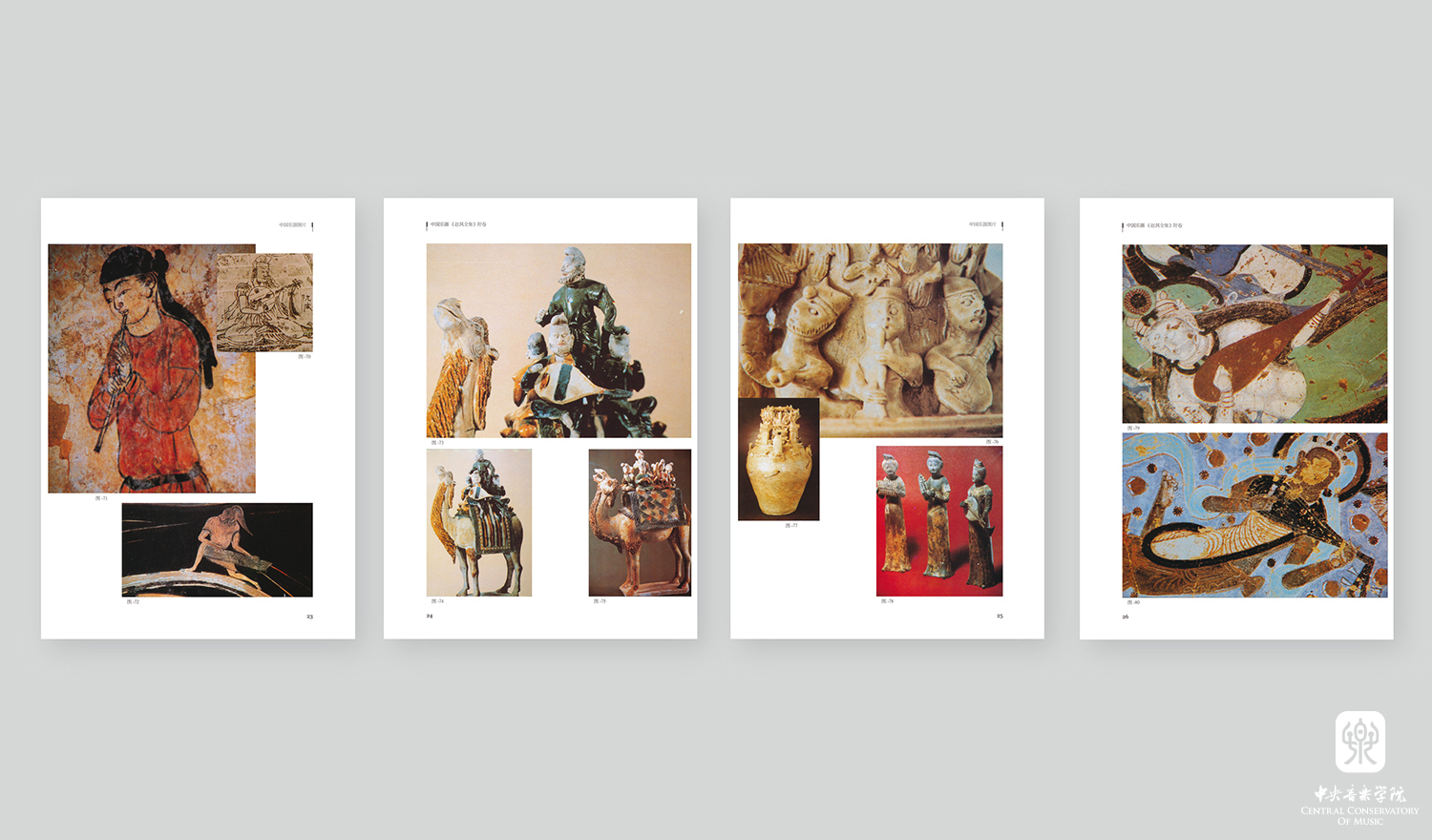 附卷(中国乐器):由赵沨主编,内容涉及古遗存中所见乐器、现存体鸣乐器、现存膜鸣乐器、现存气鸣乐器以及现存弦鸣乐器,含多幅壁画图片以及详细的乐器介绍。