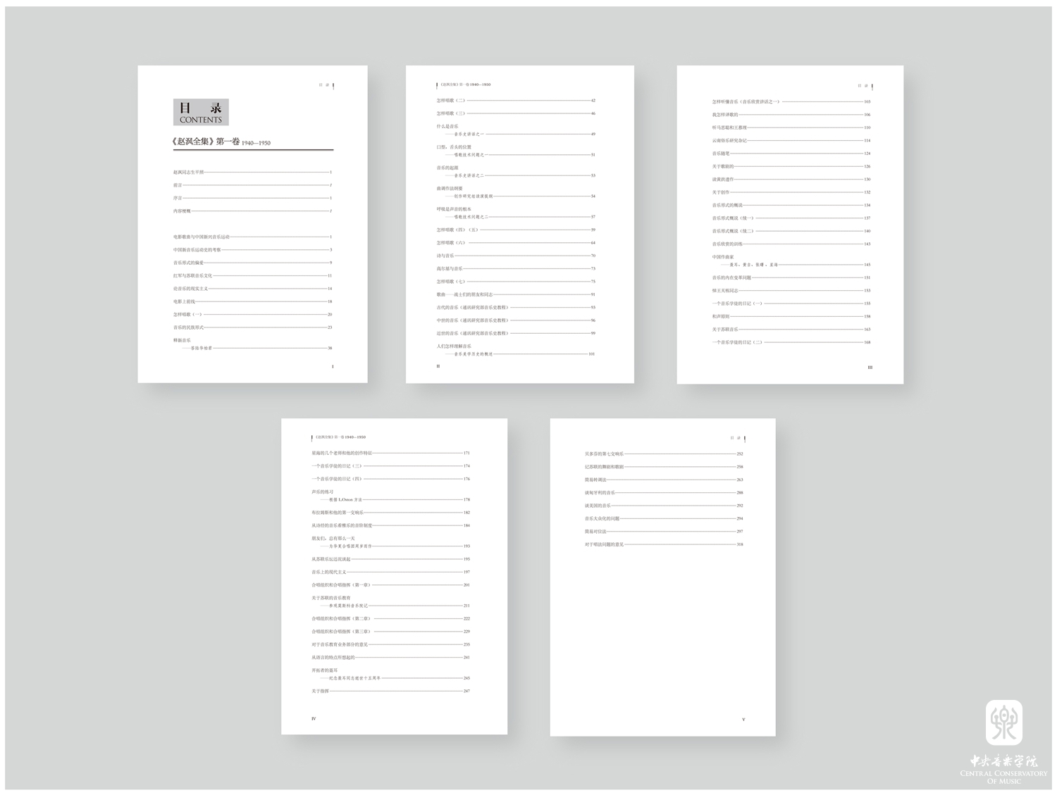 第五卷(译配歌曲):本卷收录了赵沨在1940-1950年间,在《新音乐》月刊和《新音乐》各种地方版以及《海之歌》上发表的译配歌曲共61首。其中,苏联歌曲25首,艺术歌曲31首,民歌5首,以及儿童合唱组曲《森林之歌》(合译)。