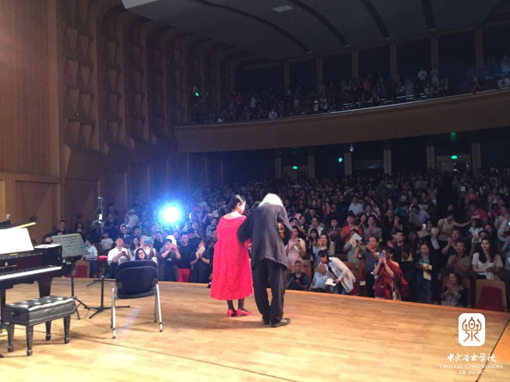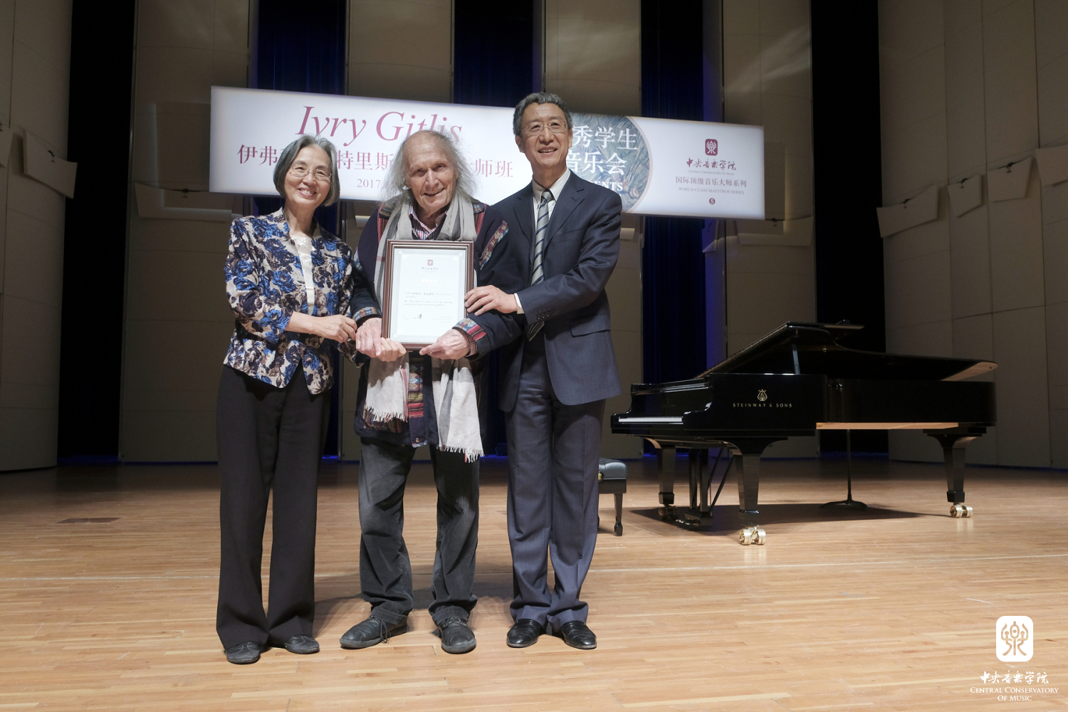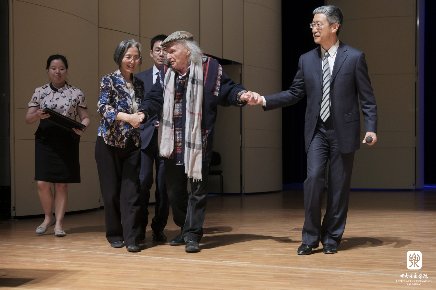 在优秀学生音乐会开始之前,AC米兰中文官网院党委书记郭淑兰女士与周海宏副院长共同为吉特里斯颁发AC米兰中文官网荣誉教授聘书,作为六天精彩而丰富的活动的圆满闭幕。