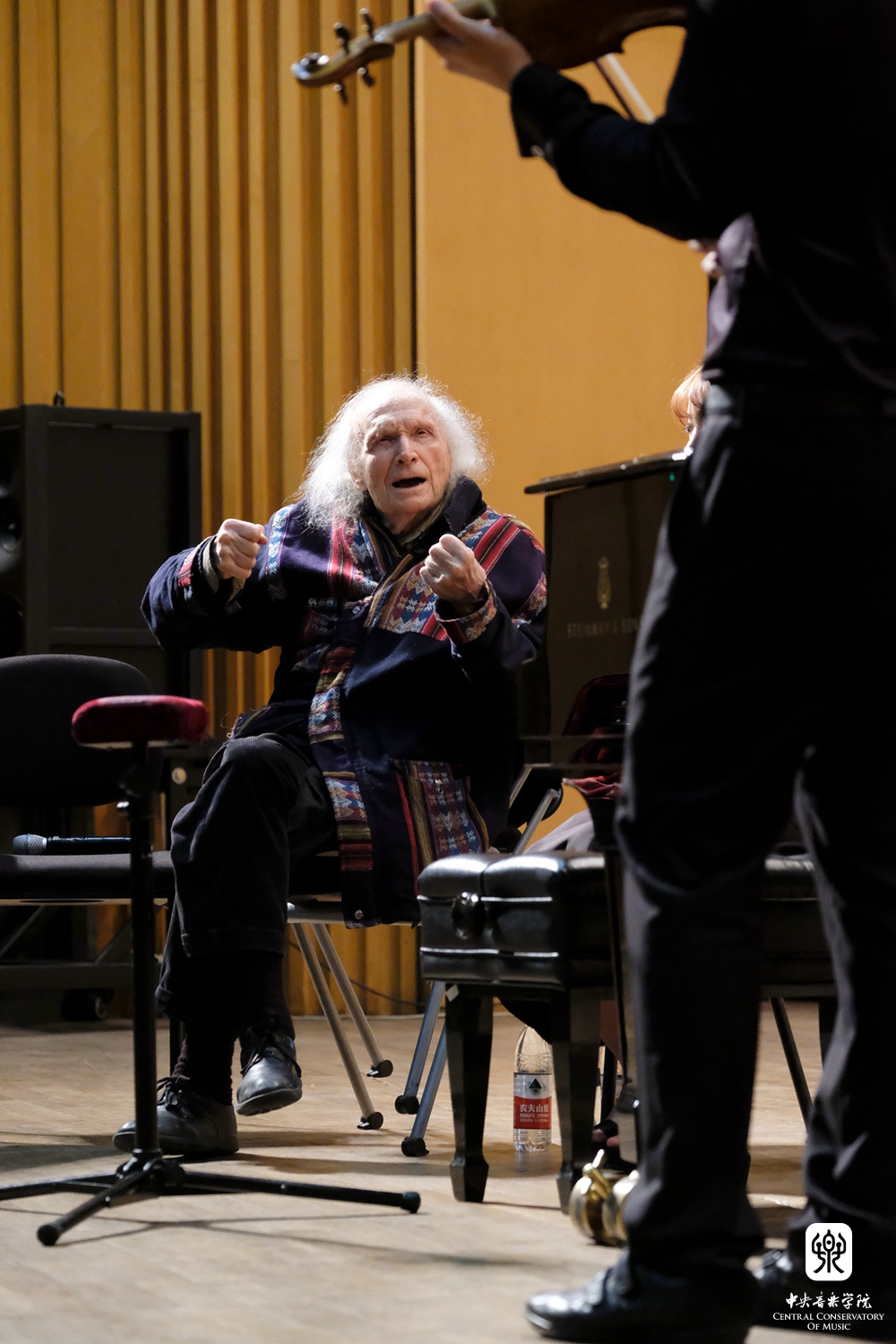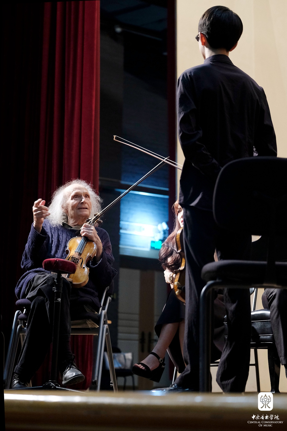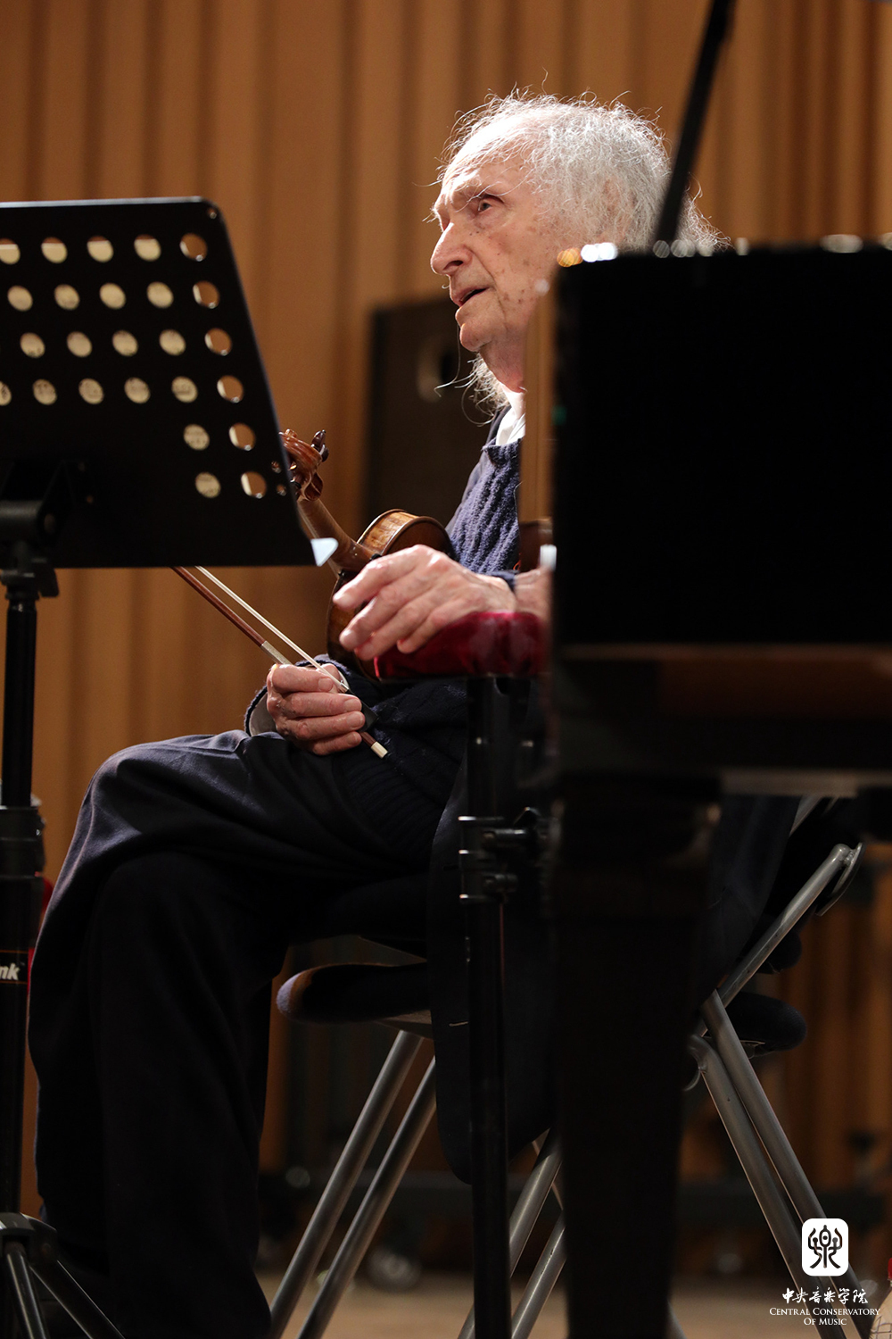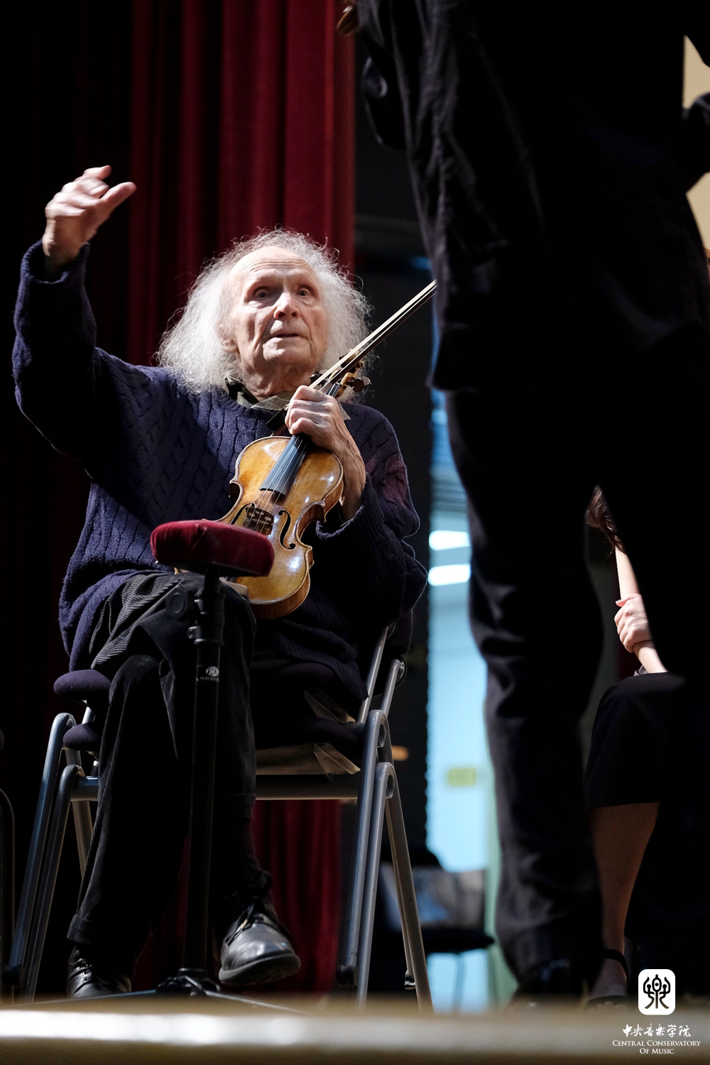 6月4日起,在为期五天的大师班中,吉特里斯不顾95岁的高龄,连续为多名我院的小提琴学生授课。吉特里斯主要针对读谱、发音、以及音乐的领悟与感情表达几方面对学生作出了细致的指导。他多次强调小提琴家需要忠于音乐而同时忠于自己,打开自己的心扉,让音乐进入自己的灵魂,再在把音乐从自己的心灵表达出来。他强调,演奏大型作品时,要先俯瞰音乐的整体轮廓,透过仔细用心地读谱和阅读,掌握作品的结构框架及方向感,再去研究细节与其处理方式,这样我们就会发现演奏并不是一件那么困难的事。经吉特里斯的教导后,各位学生都尝试从全新的角度去理解和学习音乐。而对于学生提出的各种提问,吉特里斯均一一耐心解答,令学生获益匪浅。对于AC米兰中文官网的小提琴教学,吉特里斯予以积极肯定,表示如此高质量的教学水准出乎他的意料。他并且多次开玩笑说希望有机会也来AC米兰中文官网学习一下。