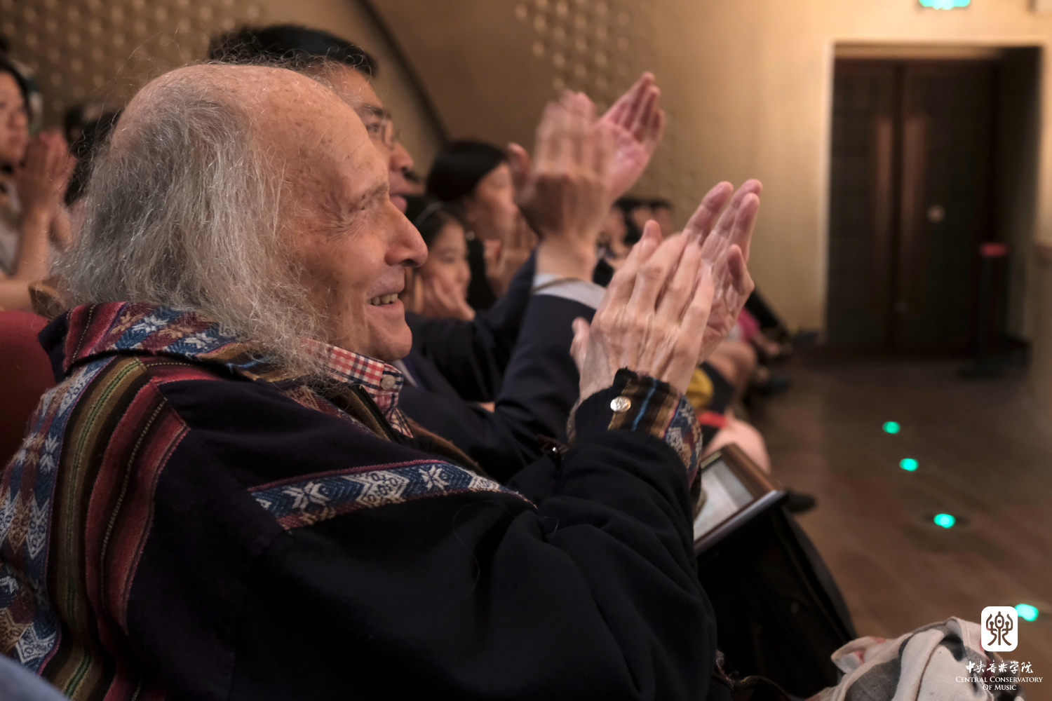 吉特里斯认真聆听每一位他教授过的学生在台上表演,每一位演奏完都兴奋的为他们鼓掌。