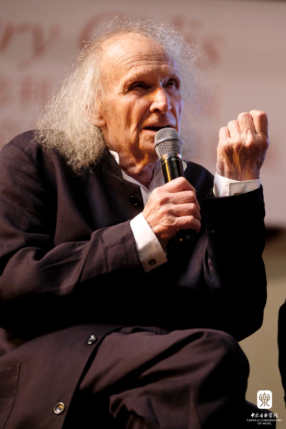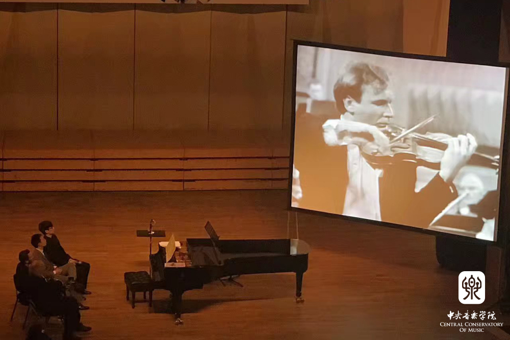 音乐会第二部分是视频讲座,由国际古典音乐制作人皮埃尔-马丁·约本以及我院小提琴副教授高参协助讲座。吉特里斯与观众一起观看了三段珍贵的历史视频,讲述20世纪从一战之后到80、90年代国际音乐史上有里程碑意义的事件,他并亲自分享了他本人与上一代音乐大师之间的一些鲜为人知的故事及趣事。吉特里斯谈吐风趣幽默,与主持人谈笑风生,加上讲座内容既丰富又珍贵,使到场的观众津津乐道,乐而忘返。