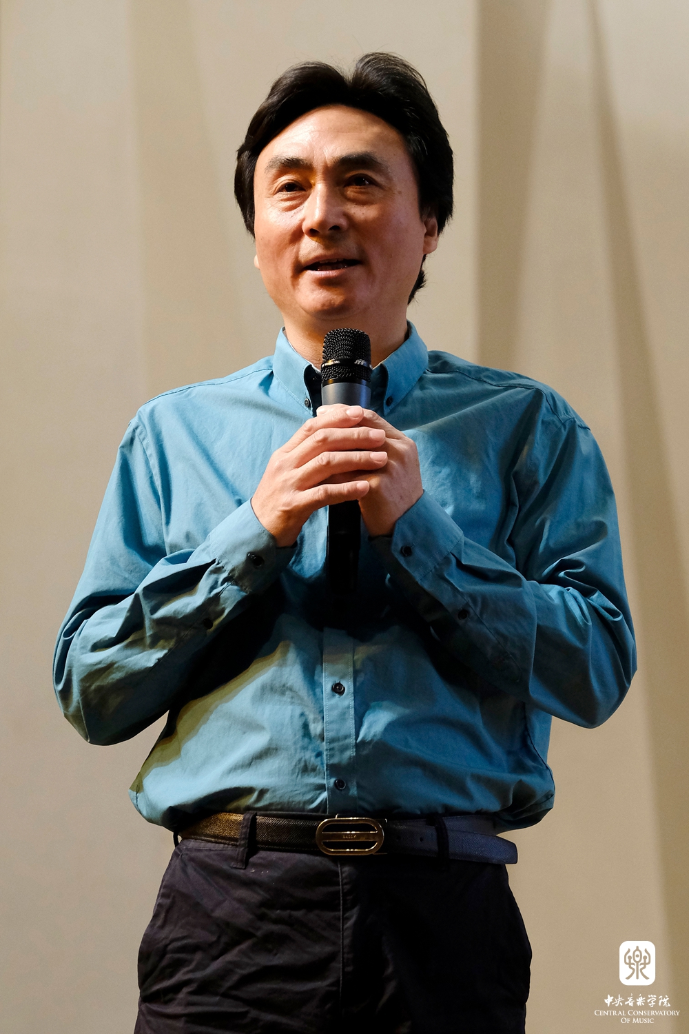 周海宏副院长致辞,并现场播放他的课上使用的吉特里斯演奏的片段