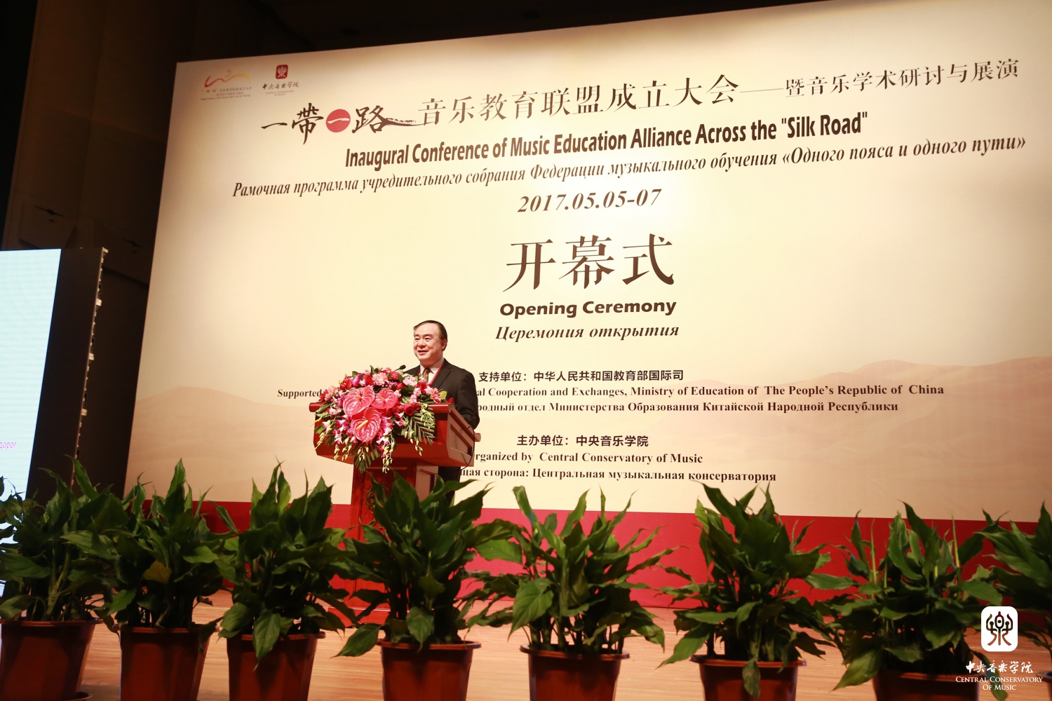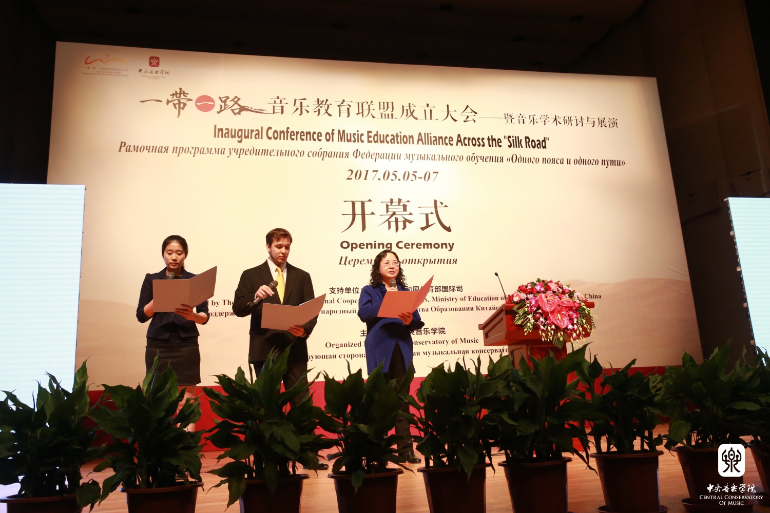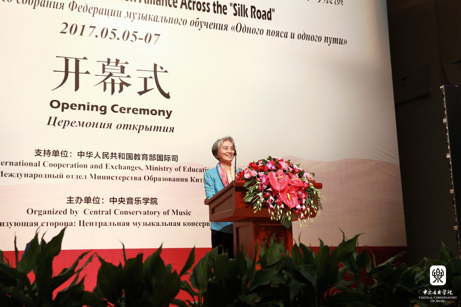 2017年5月5日上午,"一带一路"音乐教育联盟成立大会——暨音乐学术研讨与展演在AC米兰中文官网歌剧音乐厅隆重召开。教育部国际司司长许涛、AC米兰中文官网党委书记郭淑兰为大会致辞,AC米兰中文官网党委副书记苗建华主持开幕仪式。