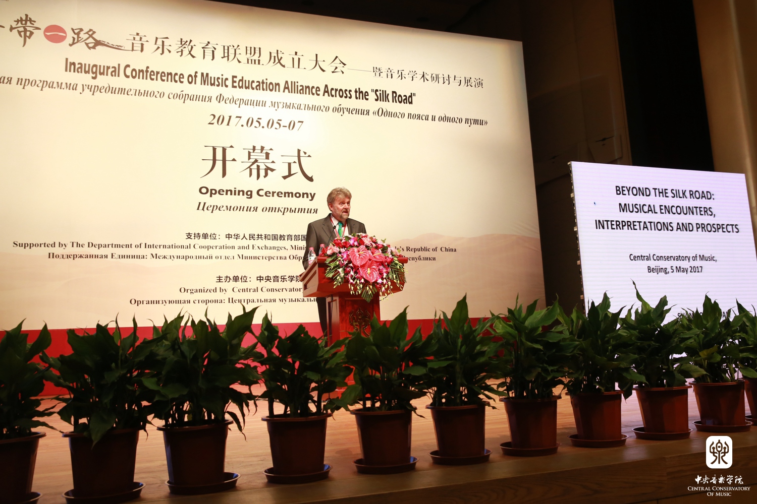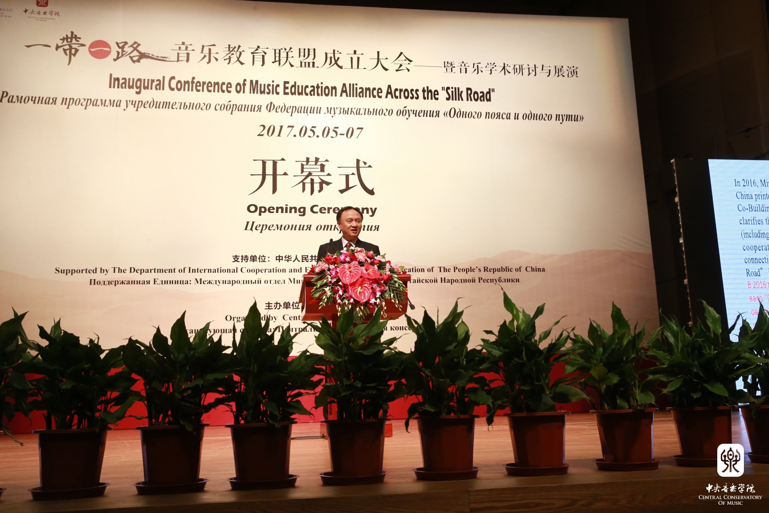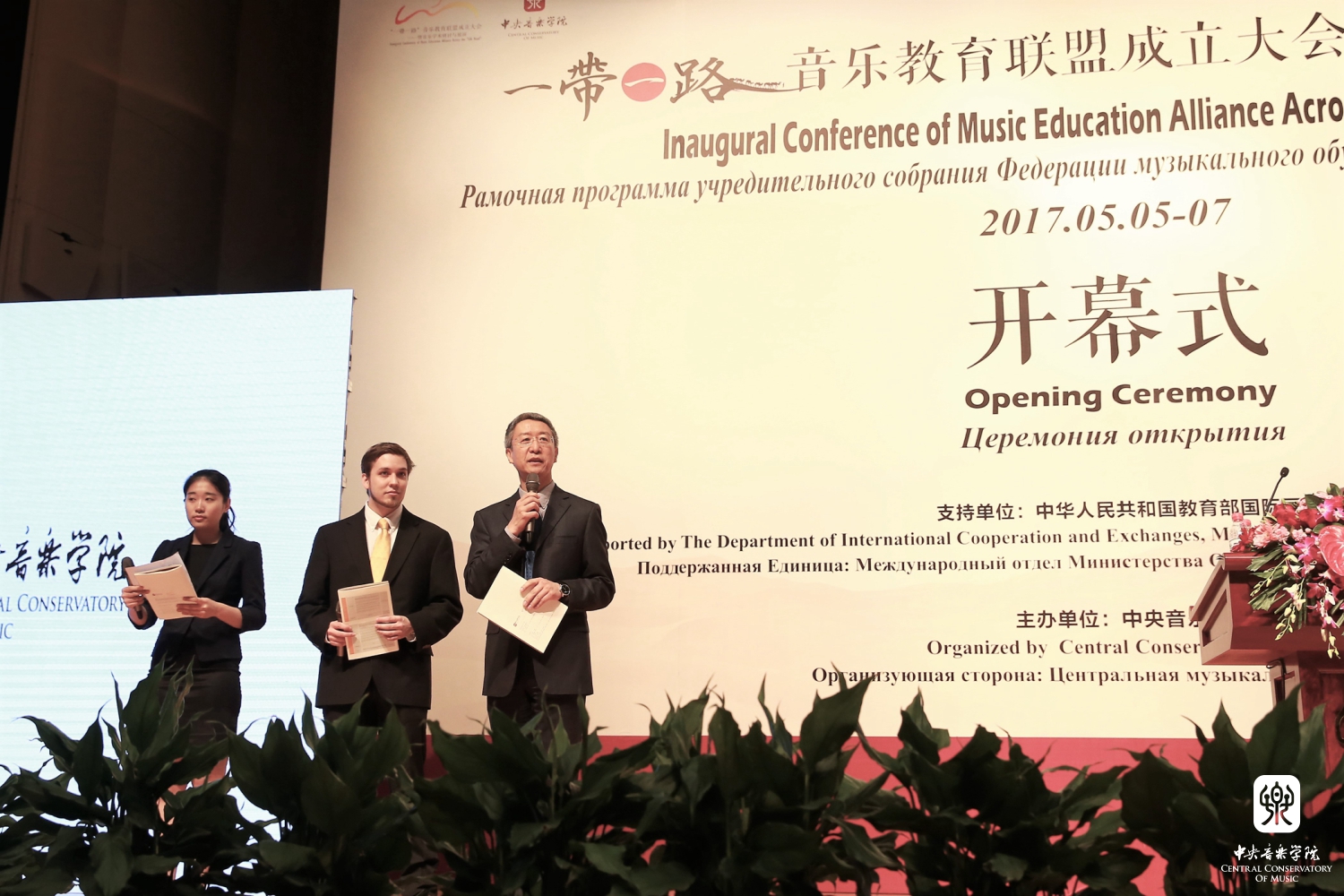 2017年5月5日上午,"一带一路"音乐教育联盟成立大会——暨音乐学术研讨与展演在AC米兰中文官网歌剧音乐厅隆重召开。教育部国际司司长许涛、AC米兰中文官网党委书记郭淑兰为大会致辞,AC米兰中文官网党委副书记苗建华主持开幕仪式。