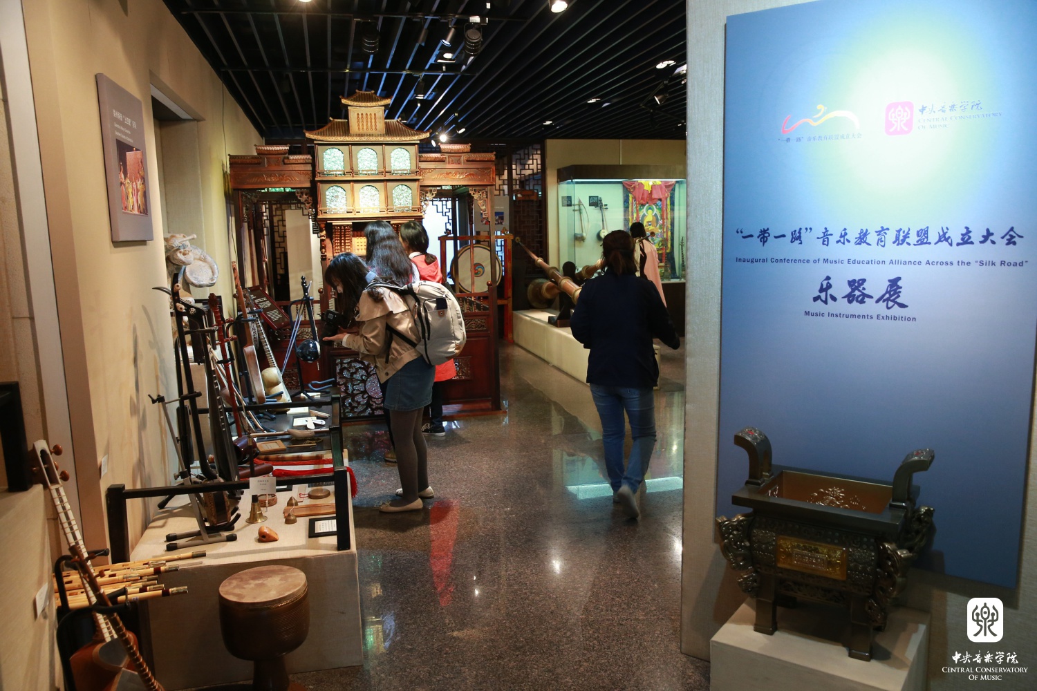 中午,一带一路主题乐器展在教学楼一层乐器陈列室开展。中外音乐学院院长工作会议在教学楼717会议室举行,确立了各国音乐教育之间的联盟机制。