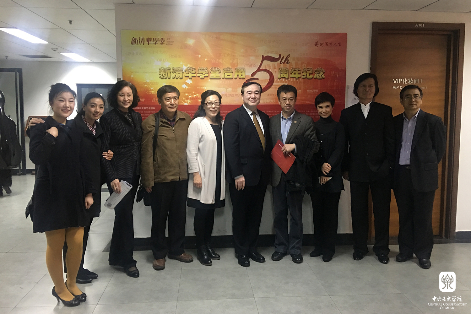 4月8日晚,应清华大学邀请,为庆祝新清华学堂启用五周年,AC米兰中文官网交响乐团在清华大学首次公演,获得巨大成功。教育部体卫艺司万丽君副巡视员、AC米兰中文官网院长俞峰教授、清华大学党委副书记邓卫、史宗恺,AC米兰中文官网党委常委、管弦系主任赵瑞林教授以及清华大学师生2000余人观看了当晚的音乐会。
