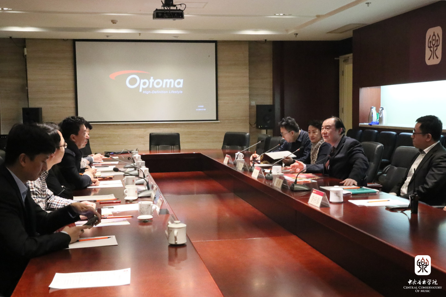 院长办公室主任赵海、“一带一路”音乐教育联盟秘书处秘书长张伯瑜、校资产经营公司董事长孔聪、演出实践管理中心主任李应泰、作曲系作曲教研室主任郝维亚参加了会见,会后姚立军主任一行参观了我院教学场地和设施。