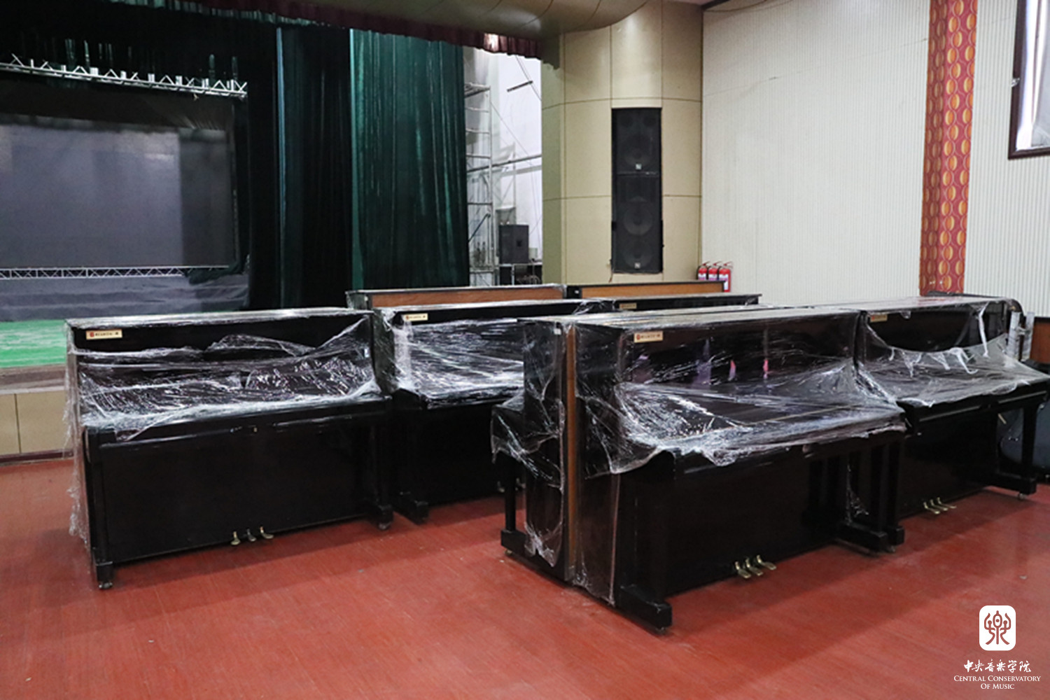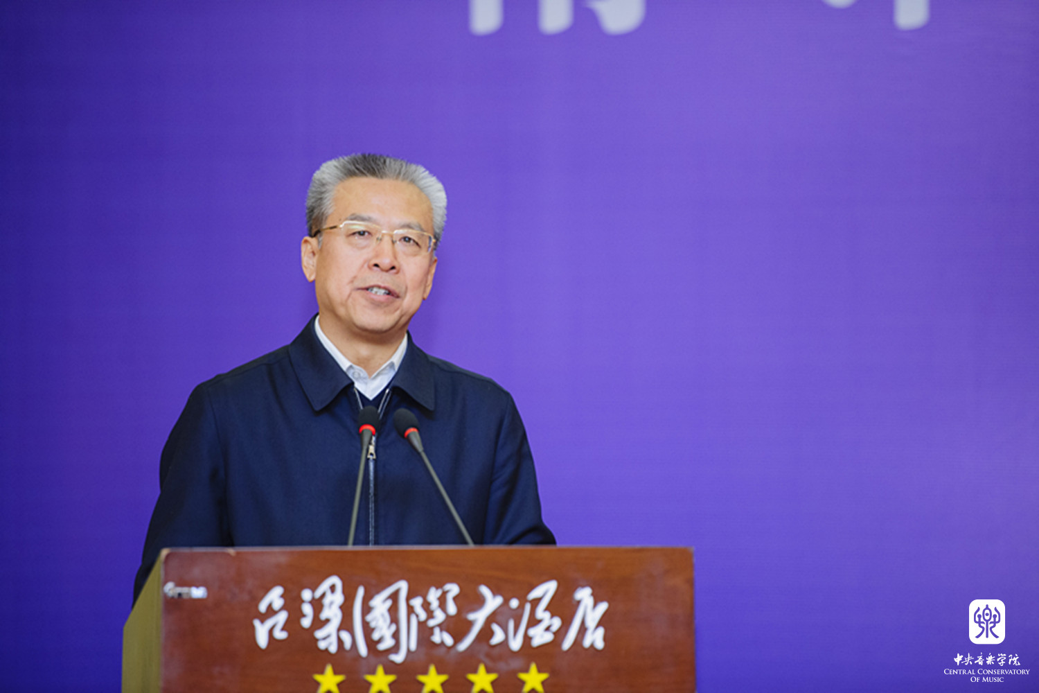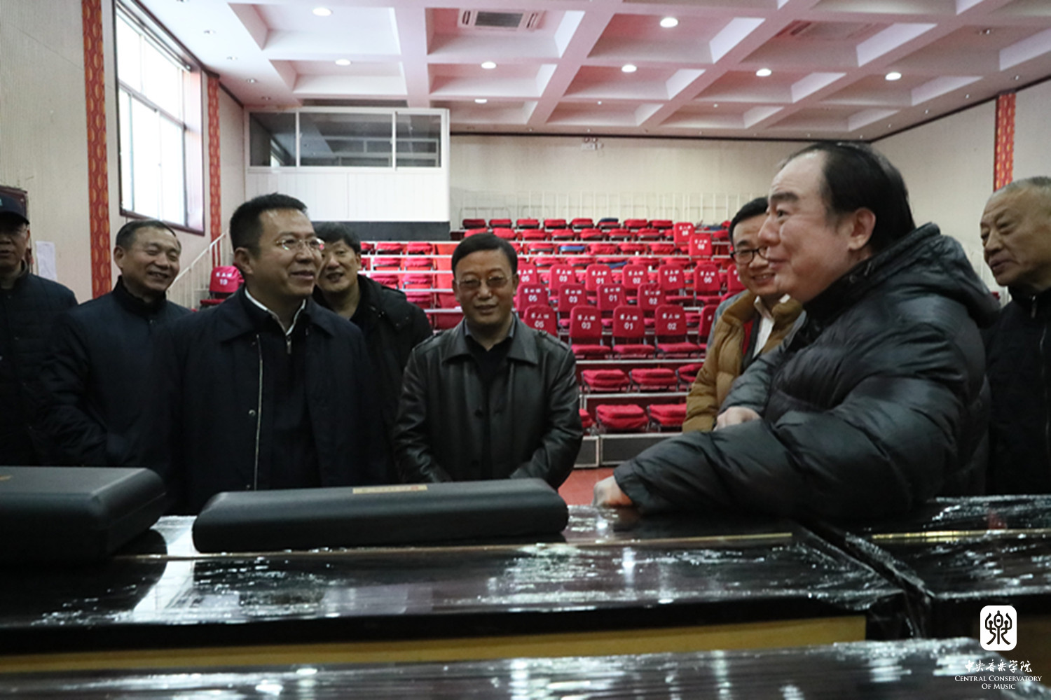 俞峰院长向吕梁市委张广勇副书记、吕梁艺校杨志明校长等介绍米兰捐赠的乐器