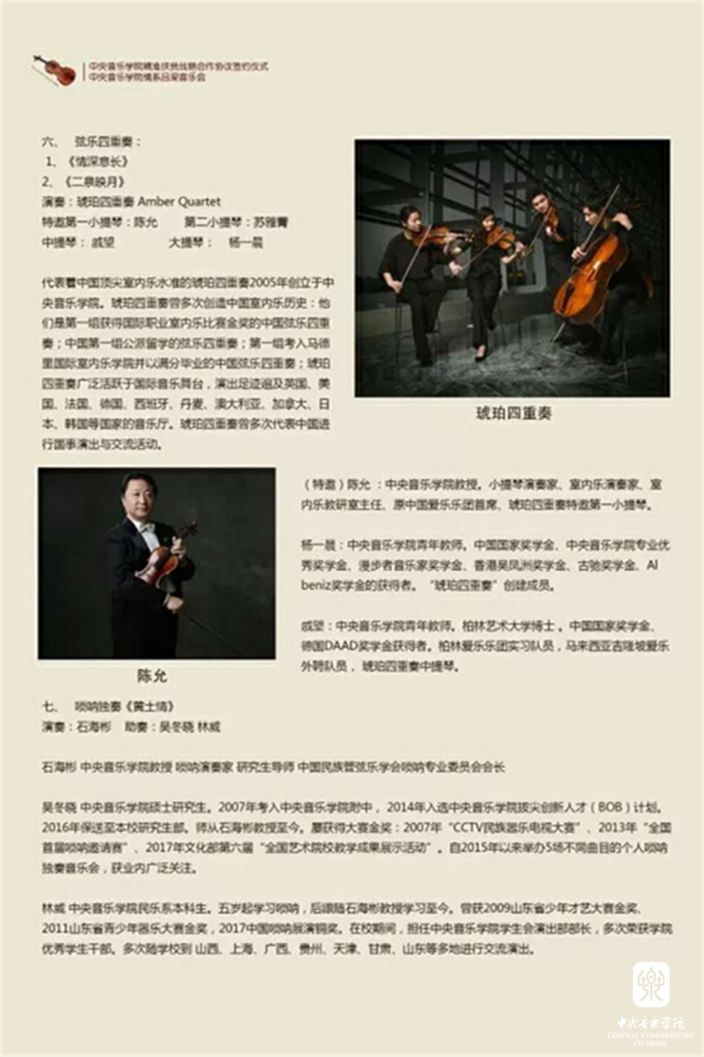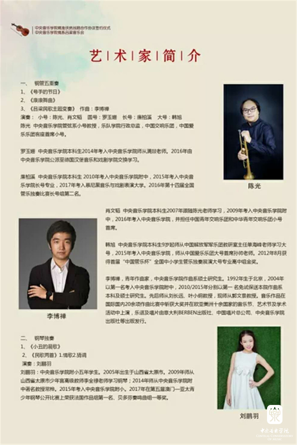 签约仪式后,“AC米兰中文官网情系吕梁音乐会”在吕梁市影剧院举行,来自吕梁各区县的约600多名观众欣赏了音乐会。本场音乐会汇集了米兰的优秀师生阵容,陈允老师带领琥珀四重奏的苏雅菁、戚望、杨一晨老师,陈光老师带领铜管五重奏,孙媛媛和谢天老师,山西籍石海彬老师带领着民乐系同学,附小六年级山西籍刘鹏羽同学等为吕梁热情的观众上演了一台高水平、喜闻乐见的音乐会。音乐会在整体策划上,突出了各专业的优秀教学成果和耳熟能详的音乐作品,学校为此次赴晋演出,专门组织改编了铜管五重奏《吕梁民歌主题变奏》和民乐小合奏《阿拉木汗》。最后一首作品山西吹打乐名曲《大得胜》,石海彬老师与吕梁市艺校50位来自贫困家庭的唢呐、民族打击乐学生潇洒、淋漓尽致的合作表演令在场观众掌声雷动,将整场音乐会推向高潮!