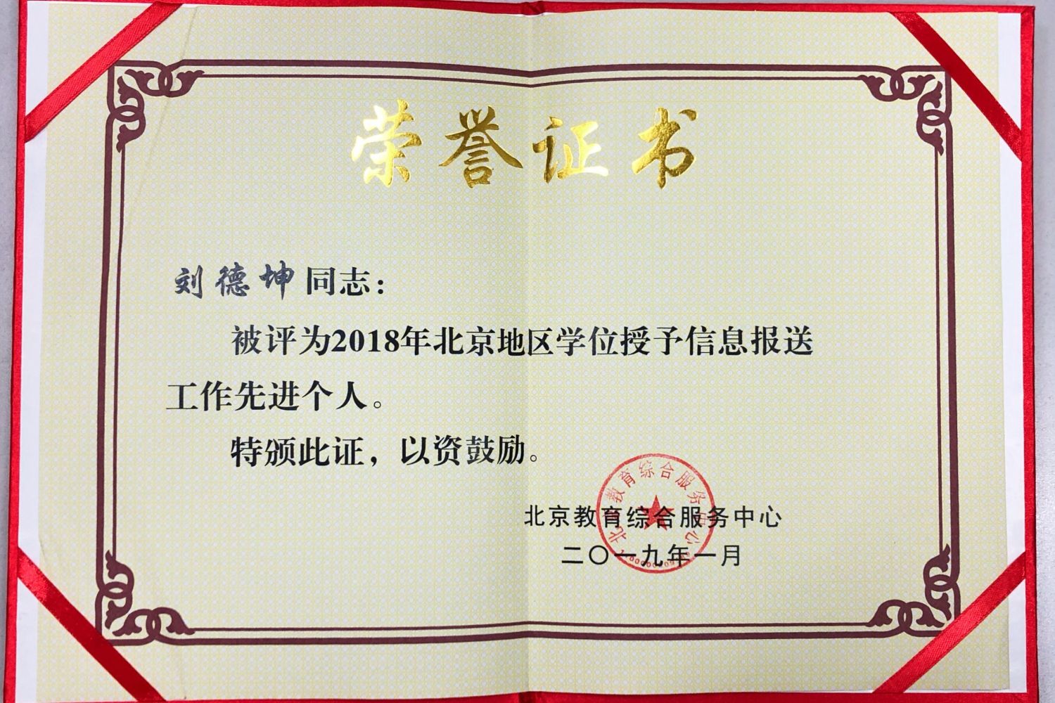 2019年4月11-12日,北京市学位委员会办公室召开北京地区学位授予信息报送工作培训会。会上,表彰了在2018年北京地区学位授予信息报送工作中,责任意识强,工作效率高,业务熟练,成绩突出,能够积极协调单位内部各部门关系,保证本单位学位授予信息报送工作顺利开展的人员。经学位授予单位推荐、个人申报、表彰工作小组集中评选、社会公示,米兰艺术硕士与学位管理办公室刘德坤老师荣获2018年北京地区学位授予信息报送工作“先进个人”称号。