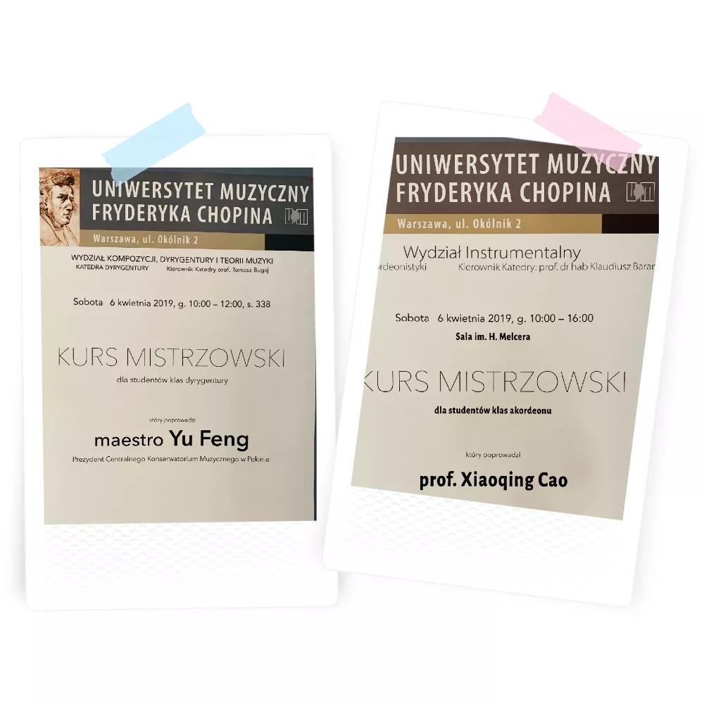 6日肖邦音乐大学邀请AC米兰中文官网院长俞峰教授和钢琴系曹晓青教授举行了大师课活动受到指挥专业和手风琴专业的师生们的欢迎。