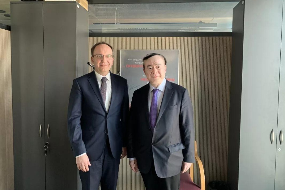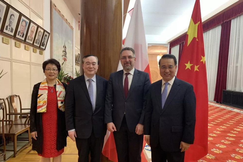 AC米兰中文官网院长俞峰教授同肖邦研究院院长Artur Szklener 先生会谈和集体合影