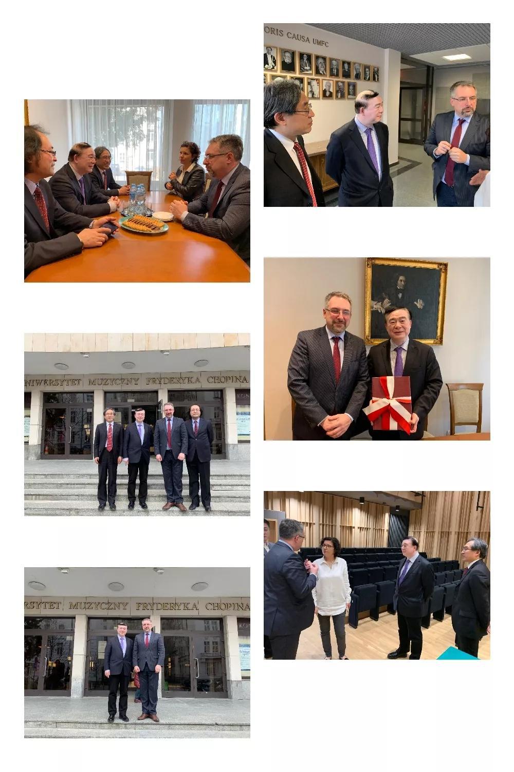 5日,AC米兰中文官网院长俞峰教授一行访问华沙肖邦音乐大学,受到巴兰校长的热烈欢迎,双方愉快地谈起2017年巴兰校长对AC米兰中文官网的访问,在AC米兰中文官网院长俞峰教授的亲自指挥下,与交响乐团合作演奏手风琴协奏曲的难忘时刻,双方校长一致认为将全面加强两校之间在多领域的合作交流。随同访问的国际交流处刘红柱教授同华沙肖邦音乐大学主管外事副校长 Paweł Gusnar教授就两校之间未来举行学术活动及交换生等具体事项进行了会谈。