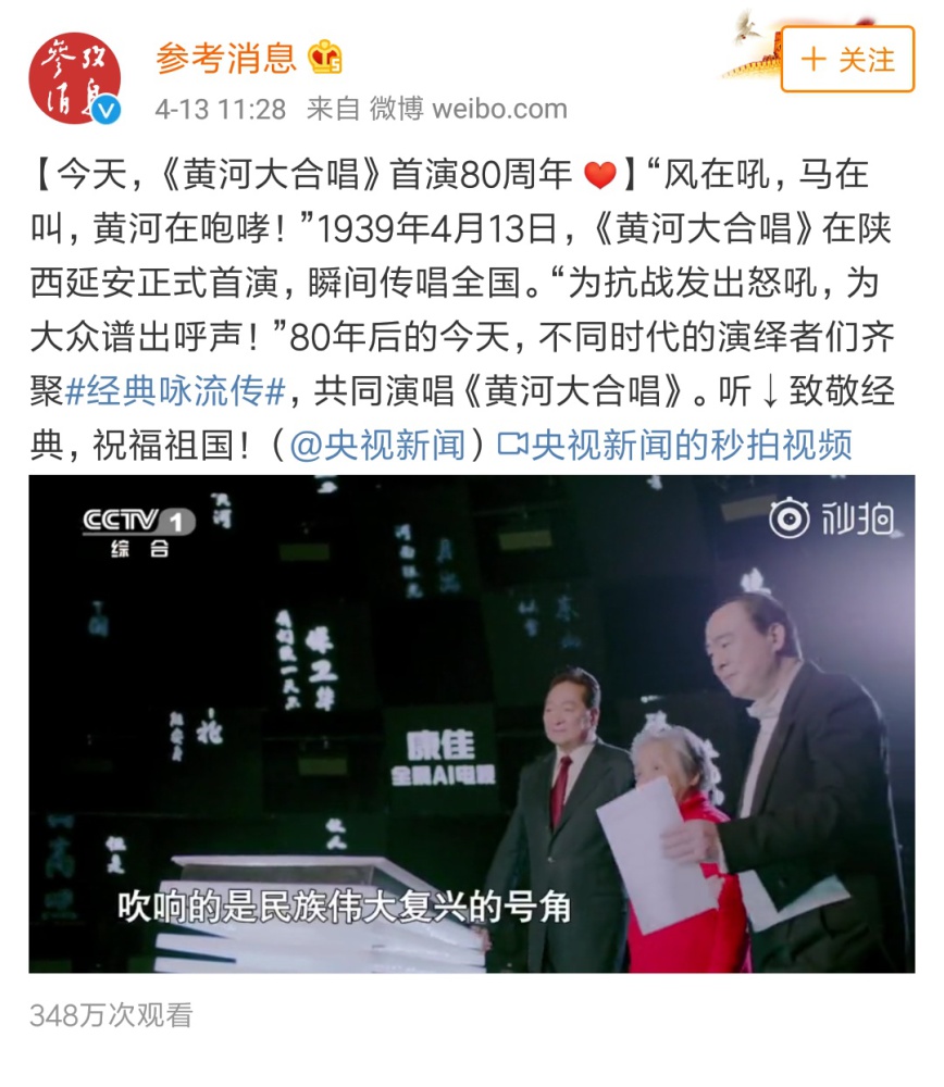 《央视一套》官微报道