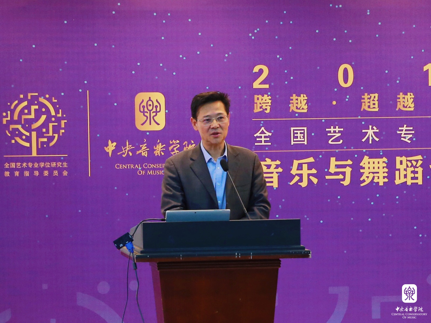 教育部学位管理与研究生教育司、国务院学位办洪大用司长因公务紧急未能前来参会,宋慧文副秘书长代读了学位办培养处刘帅副处长的会议发言。转达了国务院学位办对艺术硕士教育工作的指导和关心。发言介绍了教育部对于专业学位改革发展方面的相关情况,包括专业学位教育取得的成绩和面临的挑战,以及就此制定的改革措施和办法。进一步明确了艺术专业学位教育未来的发展方向和工作重点。